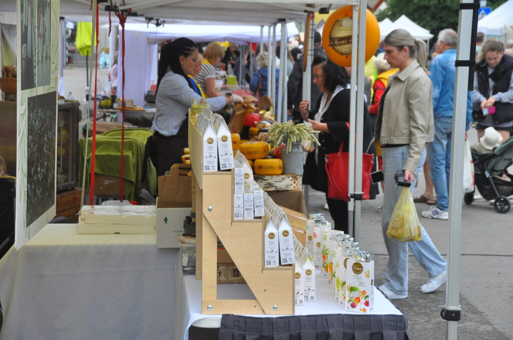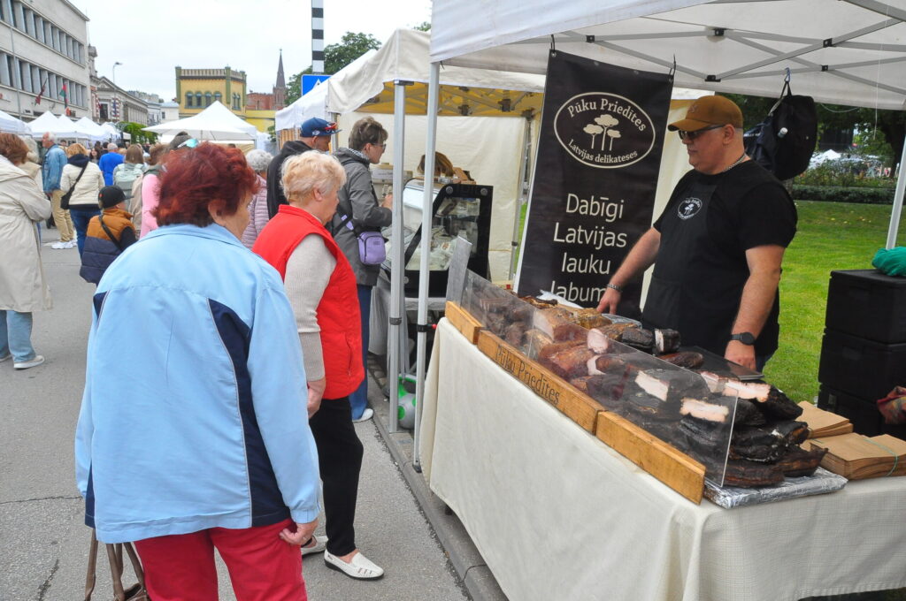 Portāls novēroja, ka Jūras svētku ieskaņas tirdziņā var iegādāties gan zivis, gan gardus kūpinājumus, sierus, smalkmaizītes un plātsmaizes, stiprākus un vieglākus alkoholiskos dzērienus. Pieejami ir arī dažādi našķi, pašu rokām abrā mīcītu un ceptu maizi un citus labumus.