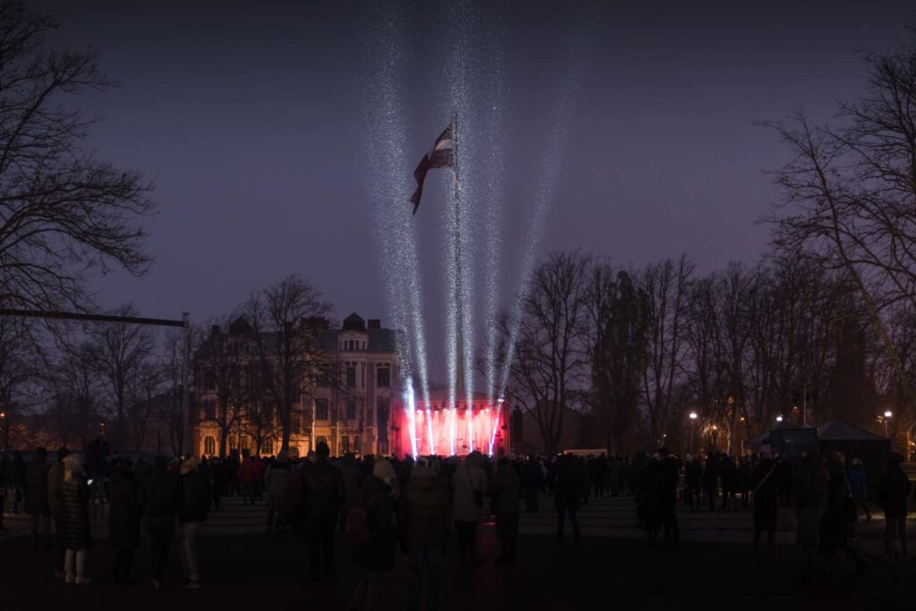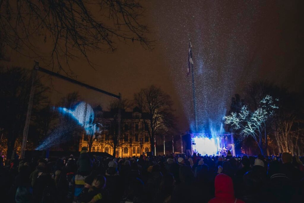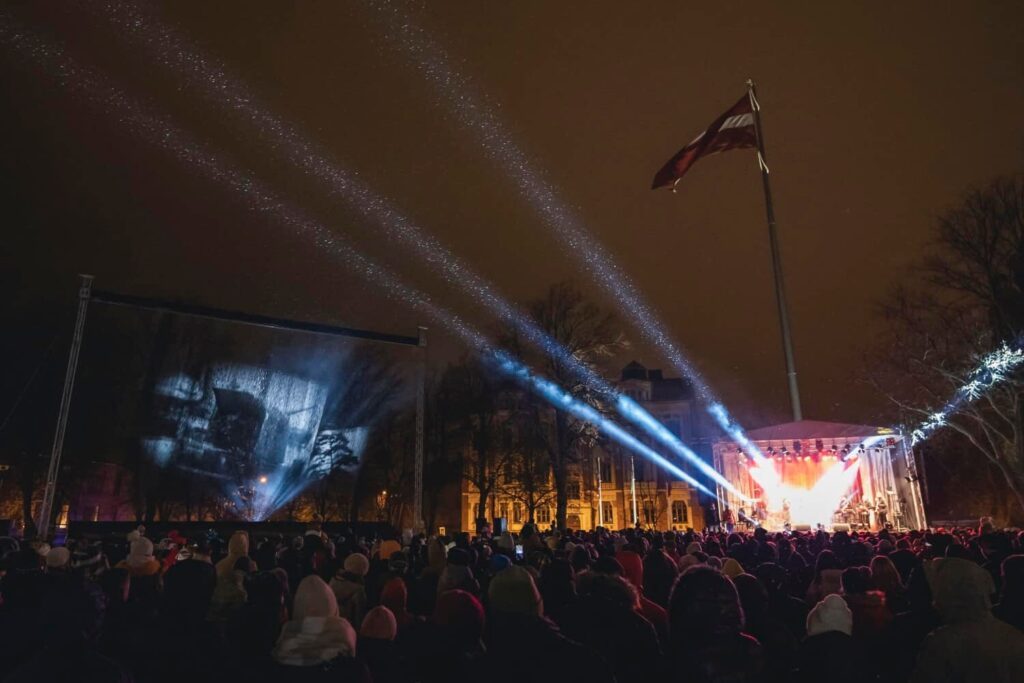 Liepājā Latvijas Republikas proklamēšanas 104. gadadienā Latvijas pirmā prezidenta vārdā nosauktajā Jāņa Čakstes laukumā svētku koncerts pulceja ievērojamu skaitu cilvēku.