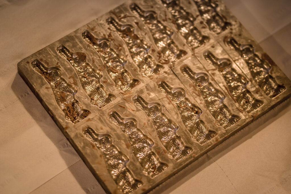Šokolādes zaķu gatavošanai darbnīcu laikā tiek izmantota autentiska 19. gadsimta metāla forma Lieldienu zaķu atveidā, kas pērn uz Liepāju atceļoja no Nīderlandes, kur Liepājas muzejs to iegādājās, veidojot Liepājas 17.–19. gs. interjera muzeju “Hoijeres kundzes viesu nams”, Kungu ielā 24.