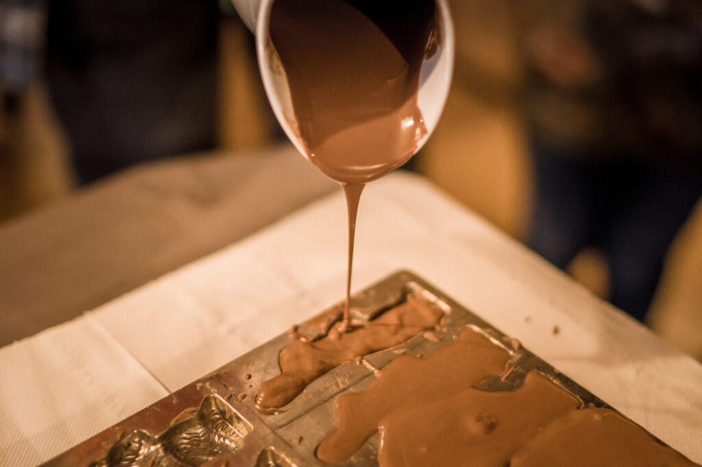 FOTO: Liepājā liela interese par iespēju izliet savu šokolādes Lieldienu zaķi