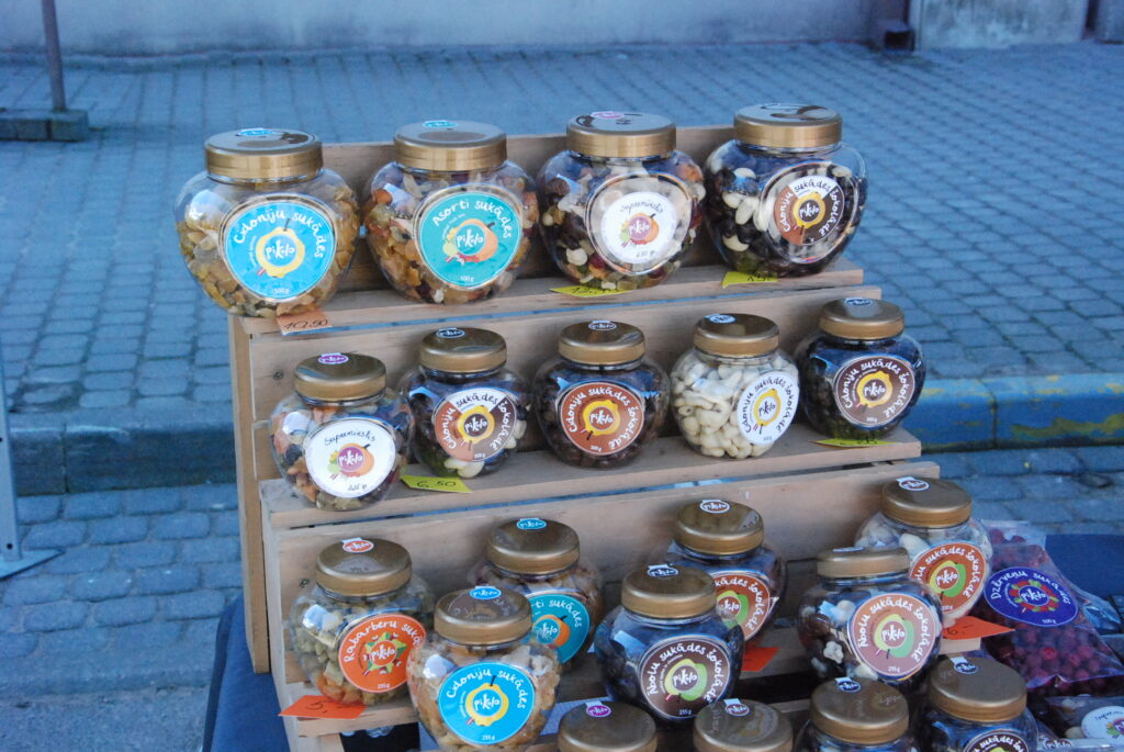 Piedāvājumā bija arī austrumu saldumi, halva un zefīri, arī Kale čipsi un pesto no kāpostu lapām, Inčukalnā ražotas pašmāju kūpinātu vistiņas bez E vielām, mājas kandžu, kas ražota Rīgā.