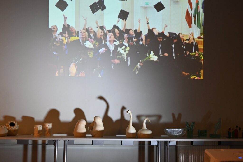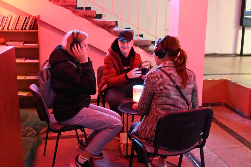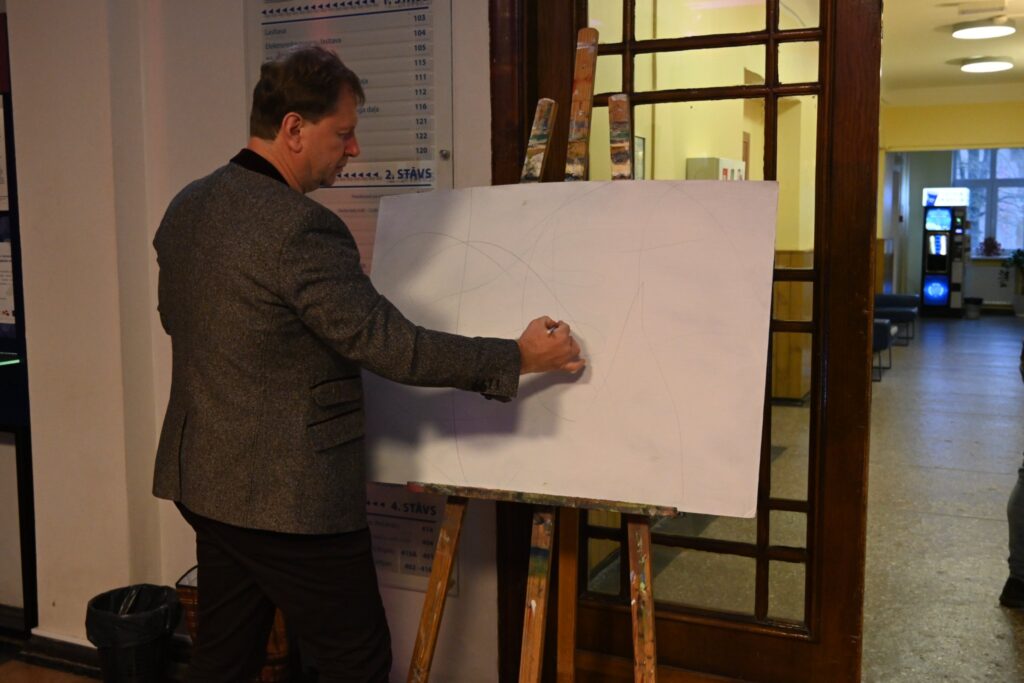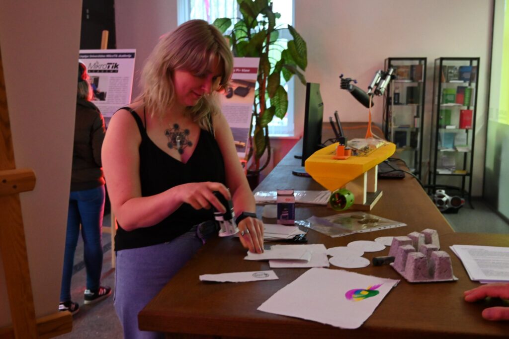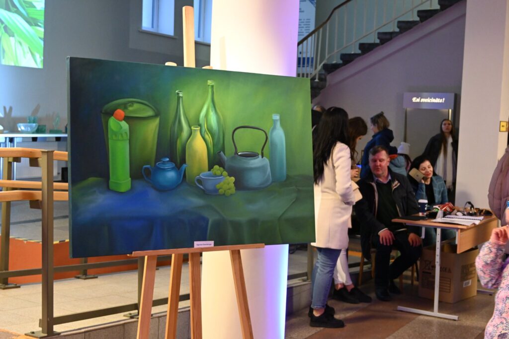 Liepājas Universitātes 1. stāva vestibilā viesus gaidīja studentu un pasniedzēju darbi – bija iespēja klausīties jauno mediju skaņas mākslas darbus un video, aplūkot dizaina studentu paveikto un kopā ar mākslinieci Guntu Krastiņu pašiem iemēģināt roku gleznošanas pamatos. Liepājas Universitātes eksakto zinātņu pārstāvji rādīja ko dara ar mākslīgo intelektu.