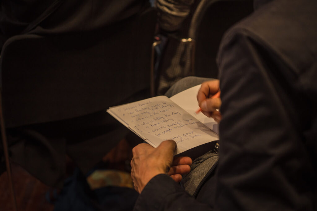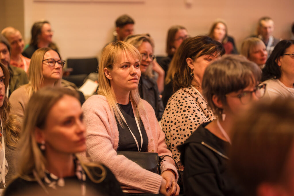 Režisore un aktrise Liena Šmukste dalījās pieredzē par sajūtu teātri – mākslas formu, kas ļauj teātri piedzīvot ar visām piecām maņām. Uzaugusi kopā ar neredzīgiem vecvecākiem, viņa uzsvēra, ka sajūtu teātra mērķis ir radīt ikvienam pieejamus kultūras notikumus. “Izrādēs skatītājiem ir aizvērtas acis – strādā visas maņas, un iztēle kļūst par spilgtāko no tām.”