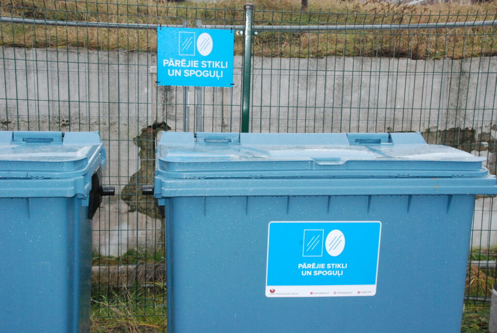 Stikla iepakojuma konteinerā drīkst izmest tīras stikla pudeles un burkas, tās var būt arī saplēstas un uz tām var būt etiķetes. Šajā konteinerā nedrīkst mest rūdīto stiklu, logu un automašīnu stiklu, spuldzes, keramikas, stikla un porcelāna traukus, smaržu flakonus, kā arī spoguļu stiklu, kam ir paredzēts cits konteiners.
