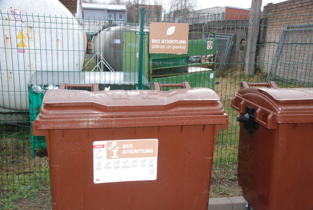 Bioloģiski noārdāmos atkritumus – sausas ēdiena paliekas bez iepakojuma un zaļos dārza atkritumus, izņemot tūjas un to zarus, kas efektīvi pārstrādājami biogāzē vai kompostā – ir jāizmet brūnajos konteineros. Šos atkritumus drīkst izmest konteinerā bez maisiņiem vai kompostējamos vai papīra maisiņos, kas nav balināti, glancēti, laminēti un ir bez plastmasas lodziņiem.