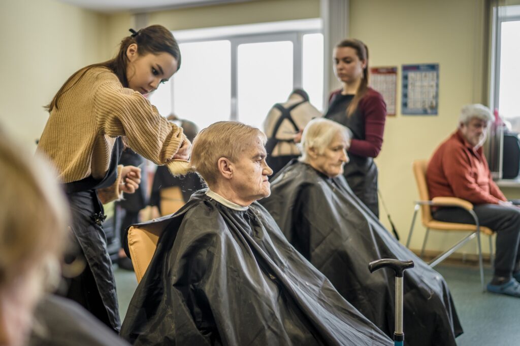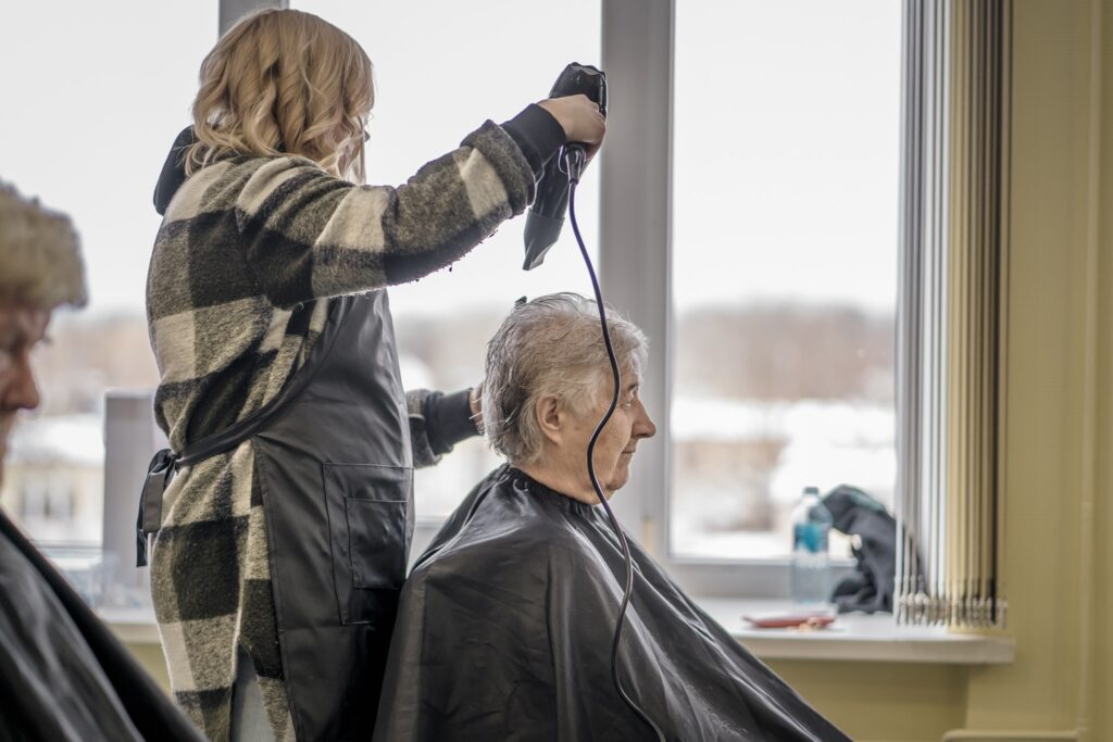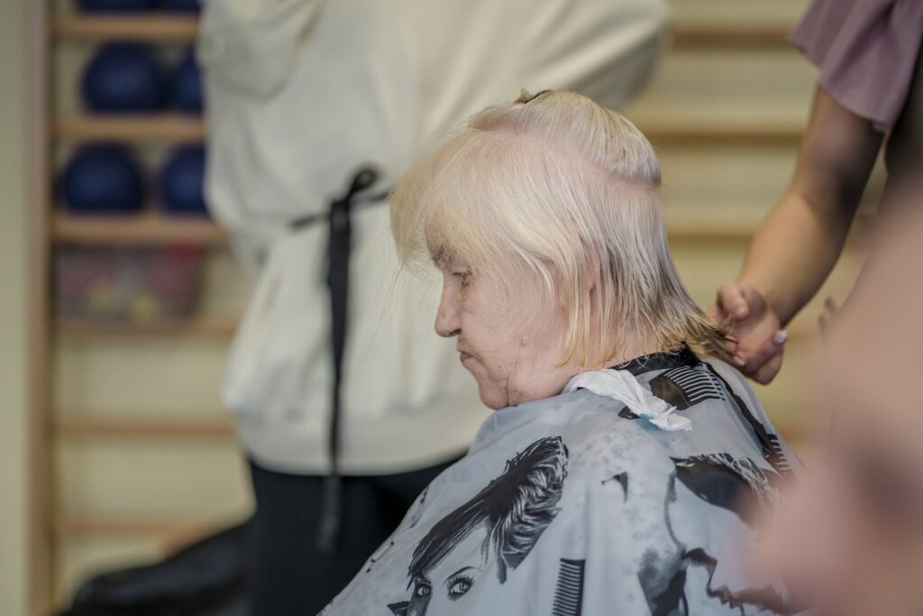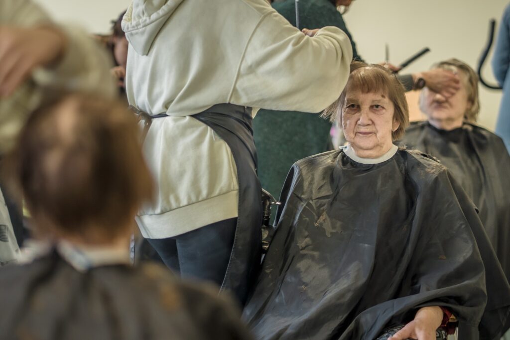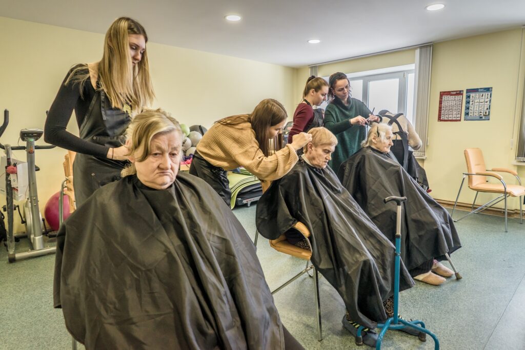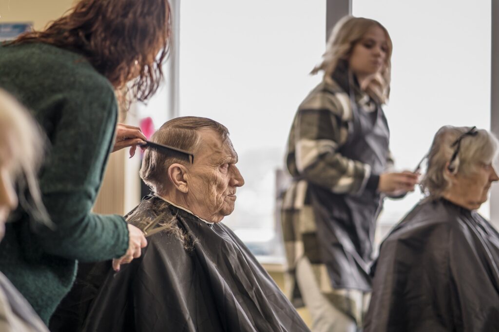 Par pagaidu frizieru salonu šoreiz pārtapa senioru vingrošanas zāle ar lielo spoguli pa visu sienu un darba vietām deviņiem frizieriem. Kā pastāstīja mājas vadītāja Linda Nīmane, interese no mājas iedzīvotājiem bijusi liela un vairākiem nācies arī atteikt, jo šoreiz priekšroka dota tiem desmit, kuri reti iziet no mājas un ir ar pārvietošanās grūtībām, vēsta pašvaldība.