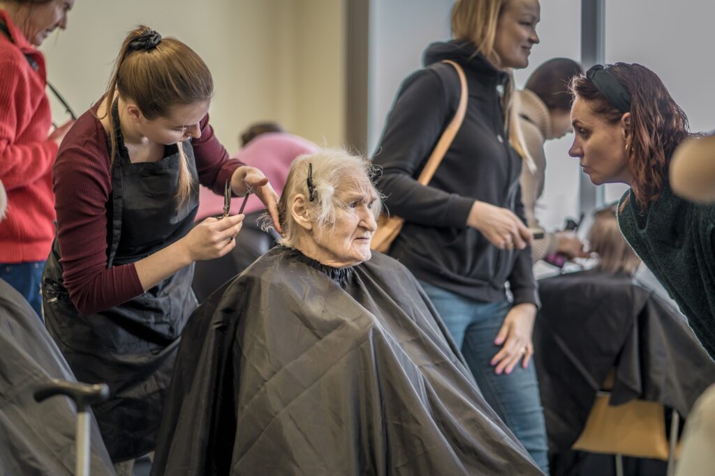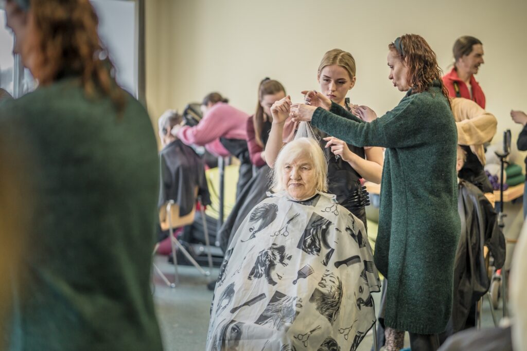 Liepājā Starptautiskās sieviešu dienas priekšvakarā patīkamas pārvērtības piedzīvoja Sociālā dienesta Veco ļaužu dzīvojamās mājas iedzīvotāji, kurus svētkiem bija ieradušās sapost Liepājas Valsts tehnikuma (LVT) 3. kursa topošās frizieres stilistes. Senioru frizēšanā tehnikuma studenti prakses laikā bija jau otro reizi, un mājas iedzīvotāji par šo iespēju ir ļoti priecīgi.