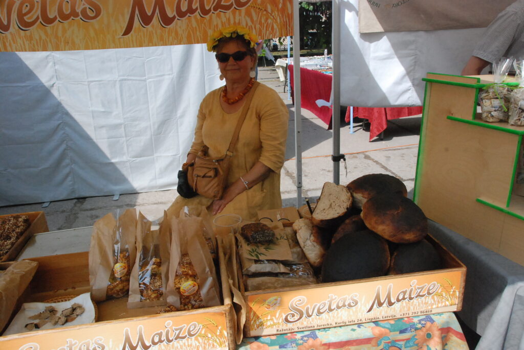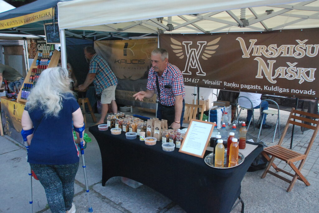 Svētku tirgū ieradušies Latvijas ražotāji no Jelgavas, Siguldas, Tukuma, Kuldīgas, Embūtes, Rūjienas, Dobeles, Bauskas, Lielvārdes, Alsungas un arī no tuvākā Dienvidkurzemes novada! Amatnieki un tirgotāji sarūpējuši dažādus gardumus un acis priecējošus labumus.