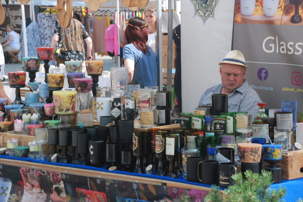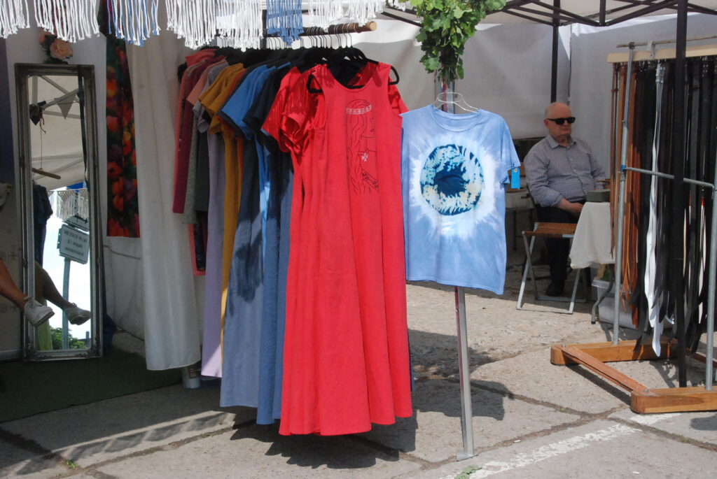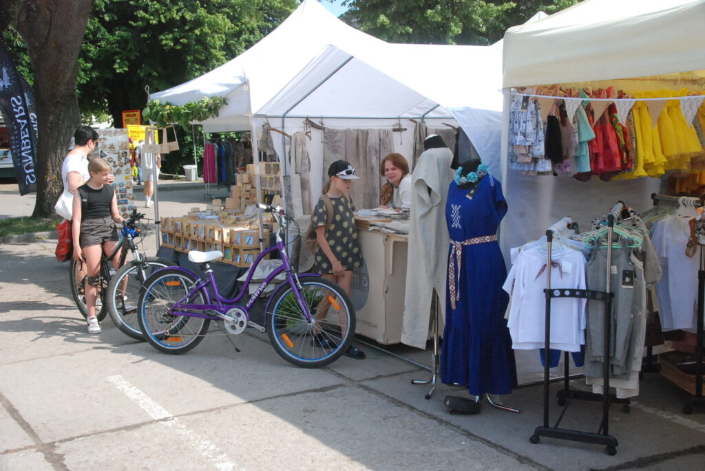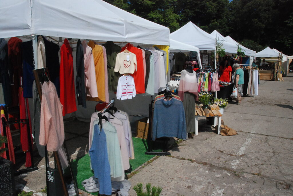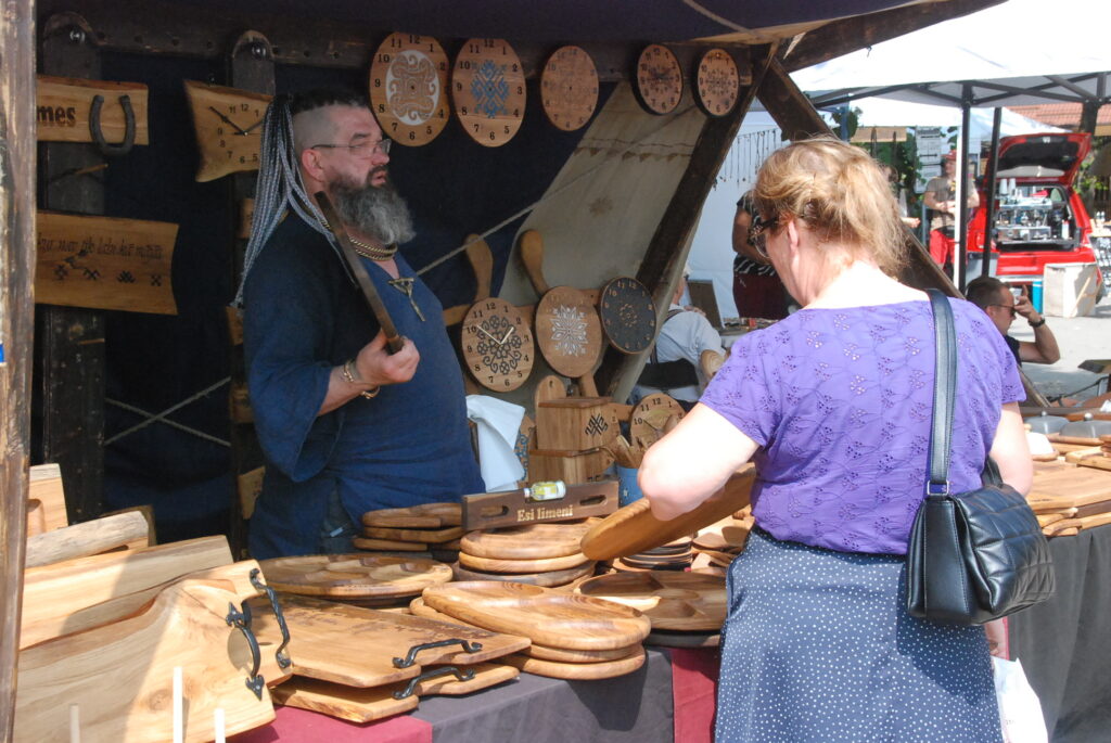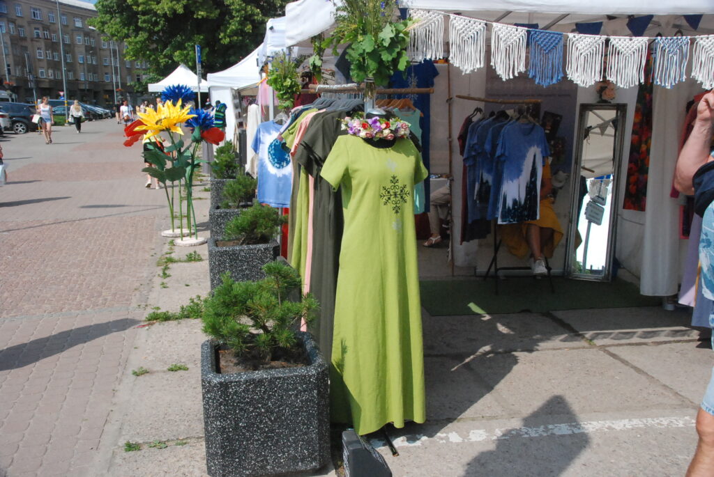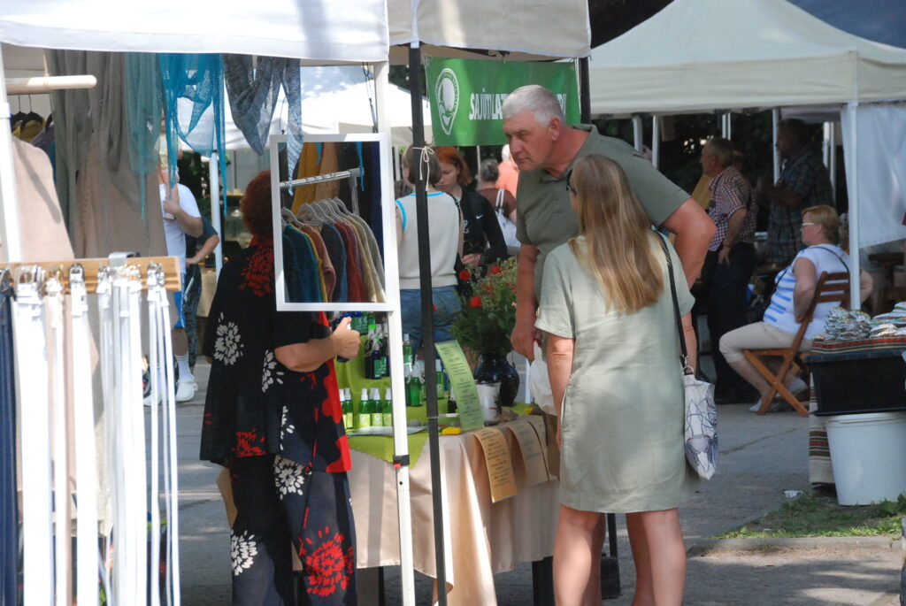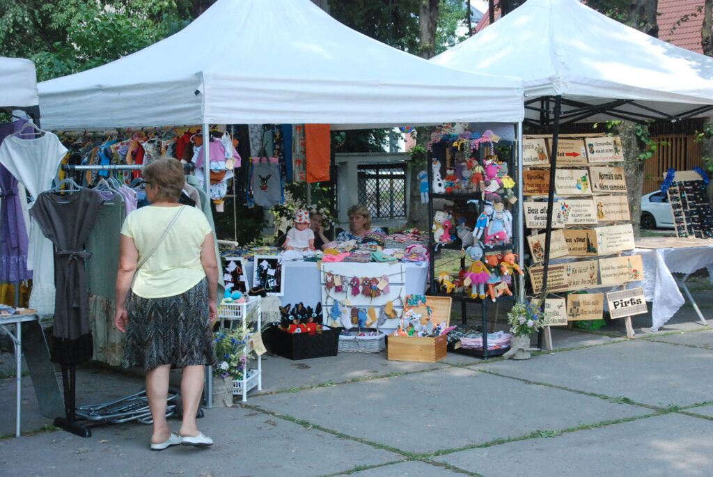 Savukārt pie amatniekiem var iegādāties smalkus izšuvumus, sudraba etnogrāfiskas rotas, ar rokām apgleznotu linu, t-krekli un cepures, speciāli Līgo svētkiem darinātus suvenīrus un lina kleitas, dažādus ādas darinājumus un īstas pērles. Plašs piedāvājums ir gan pieaugušajiem,gan mazajiem un arī lielākiem bērniem.