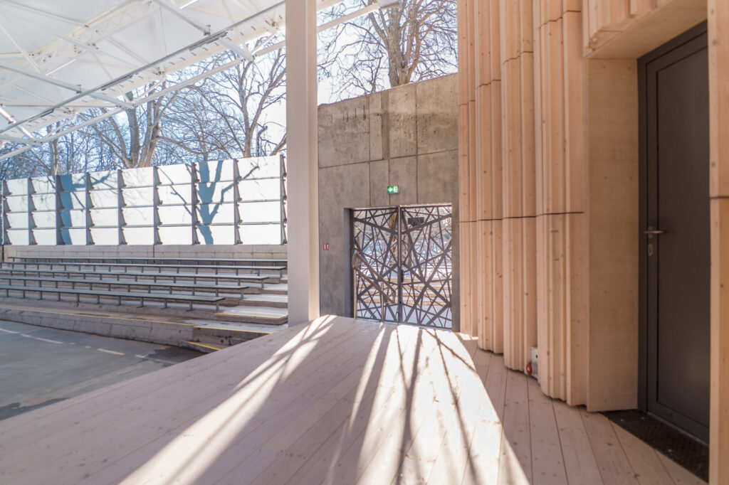 Koncertdārza ārējā teritorija ir izveidota kā Jūrmalas parka paplašinājums – tā vairs netiek atdalīta ar dzelzs sieta žogu, kā iepriekš.