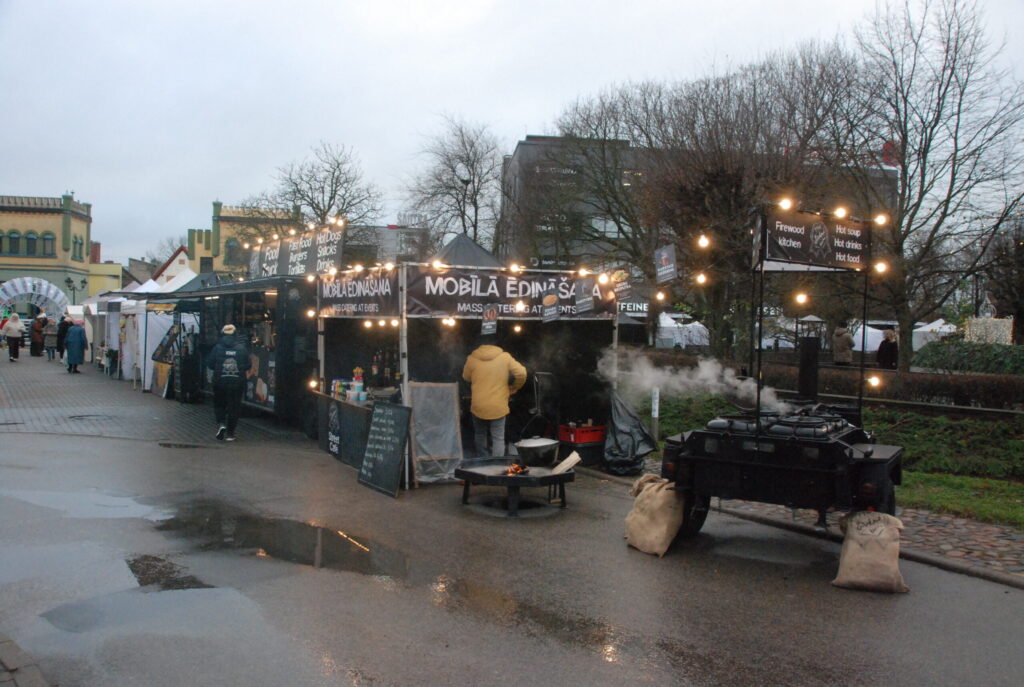 FOTO: Liepāja pošas vakara lielajam notikumam, Rožu laukumā jau darbojas svētku tirdziņš