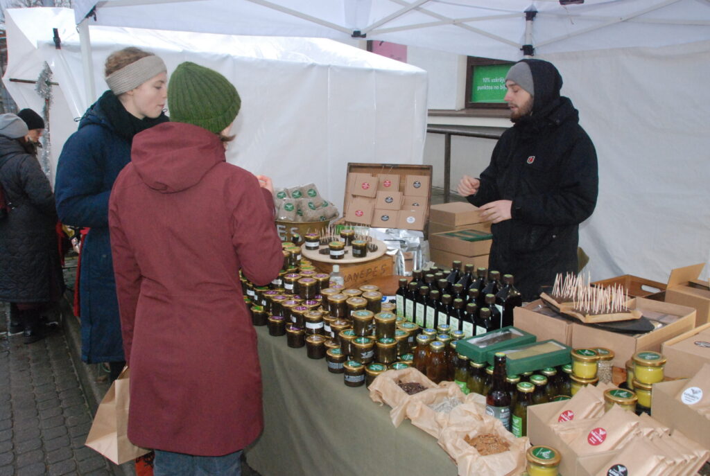 No pēcpusdienas līdz pat pulksten 20 Rožu laukumā darbojas svētku tirdziņš, kurā iespēja iegādāties īpaši svētku laikam darinātus mākslas izstrādājumus, ziemas sezonas cienastus un svētku dāvanas.