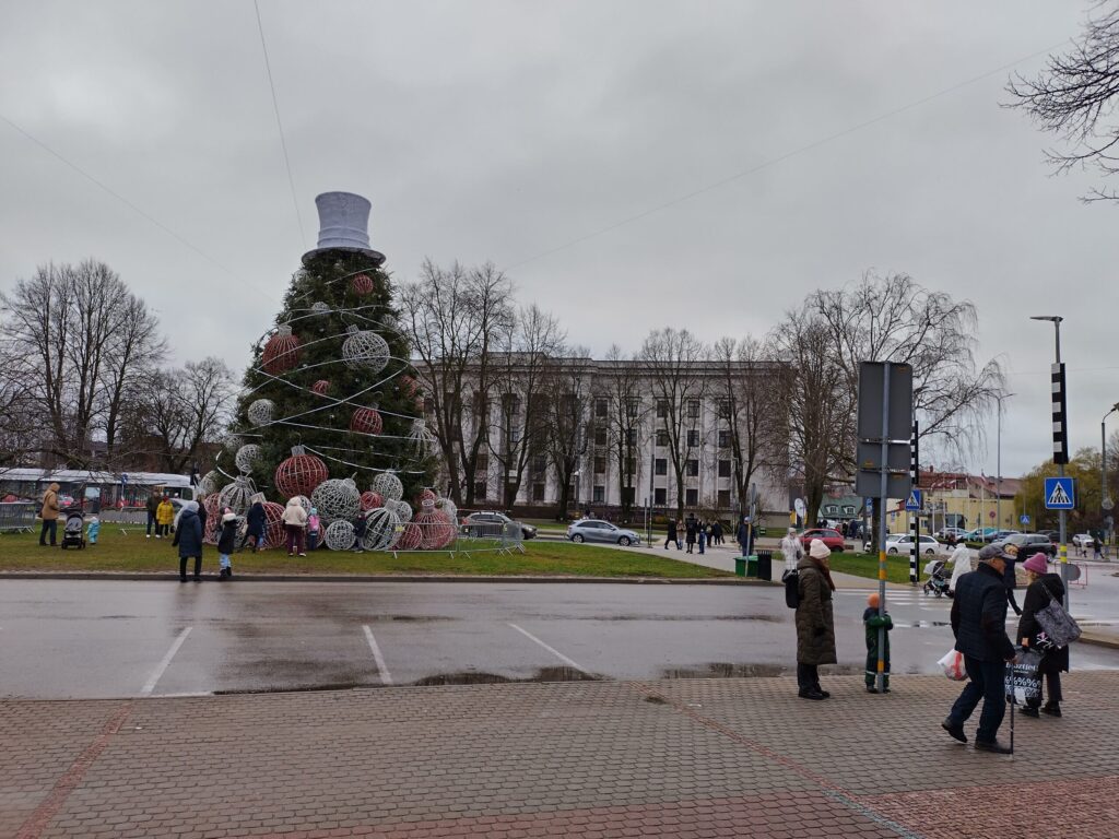 Portāls novēroja, ka pilsētas centrā vēl tiek likti pēdējie rotājumi.