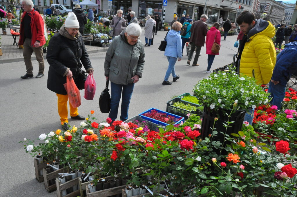 FOTO: Liepājā, Rožu laukumā, stādu paradīze tirgū "Pavasaris ziedos"
