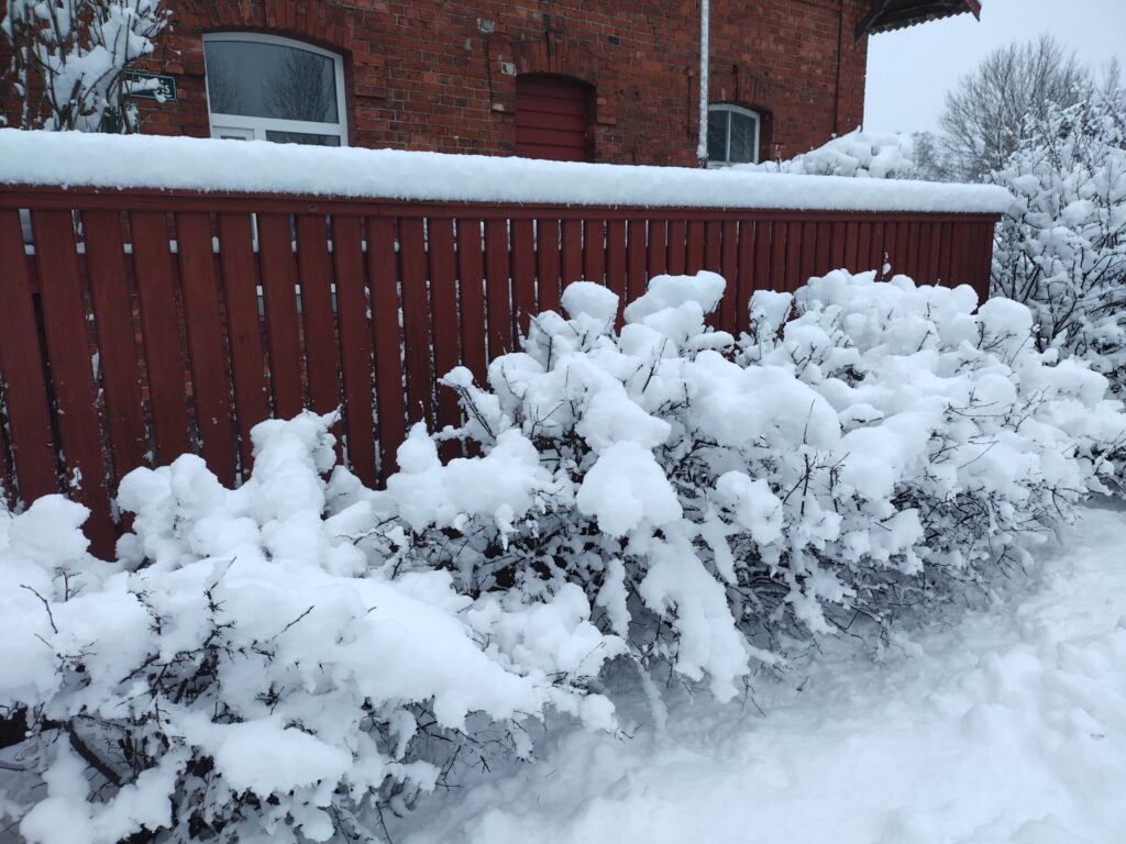 Kurzemes lielākajā daļā sniega biezums ir tuvu desmit centimetriem, daudzviet turpina snigt. Septiņi centimetri sniega ir arī Rūjienas novērojumu stacijā, vēsta LETA.