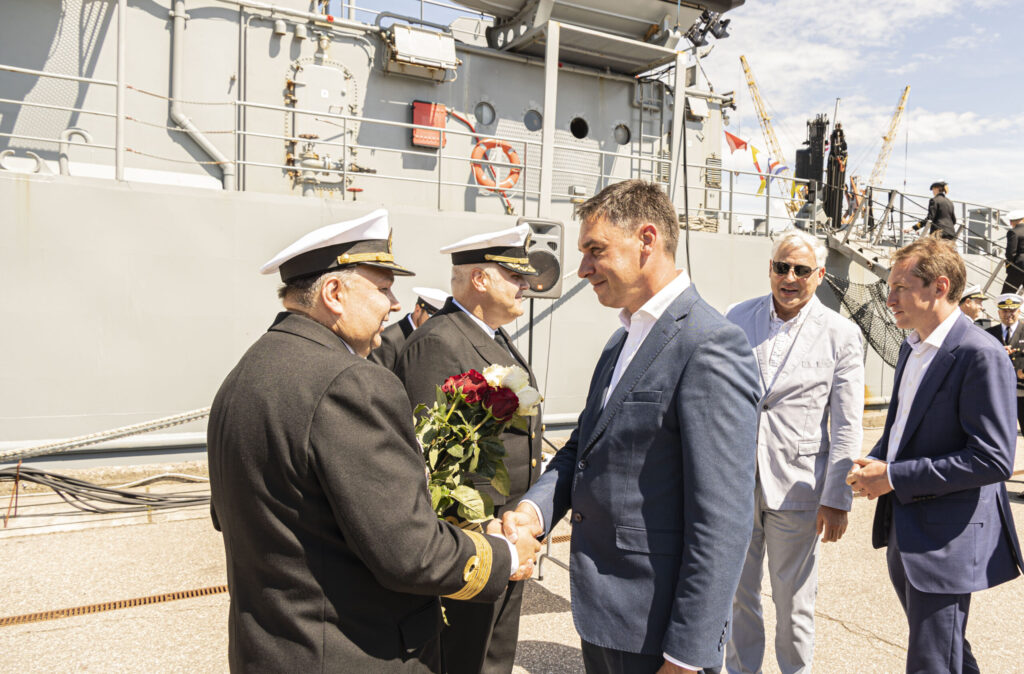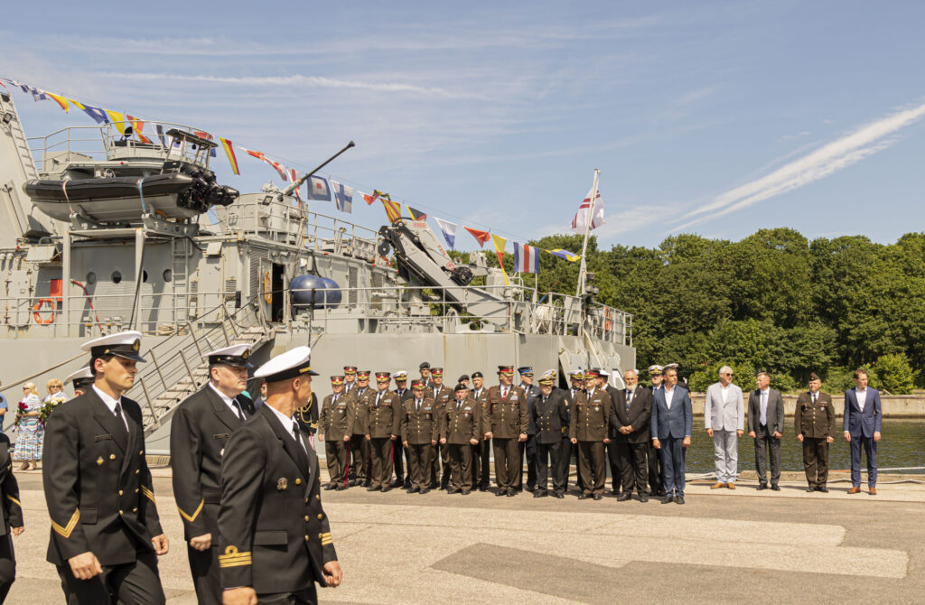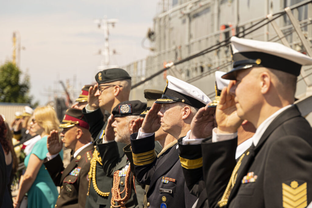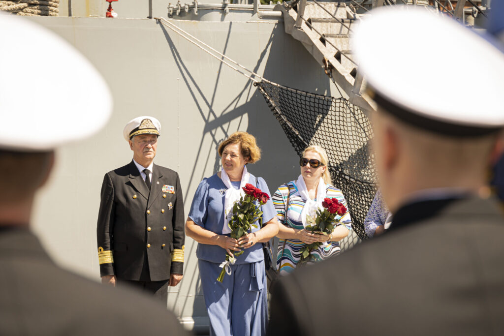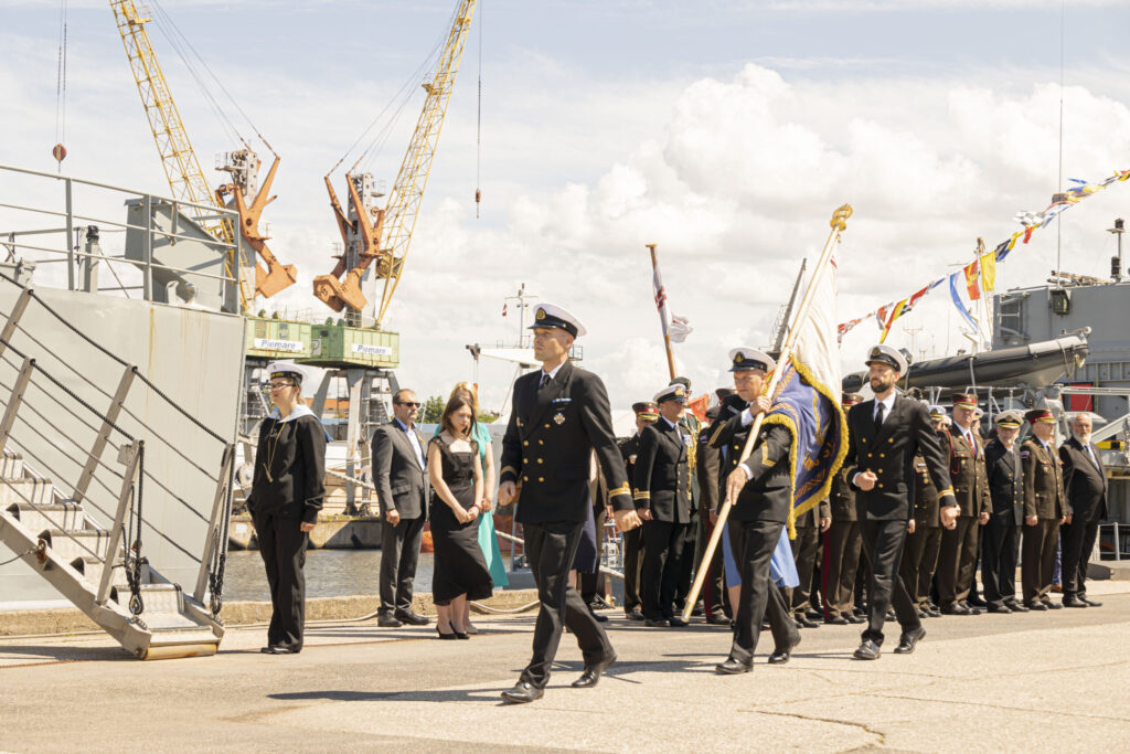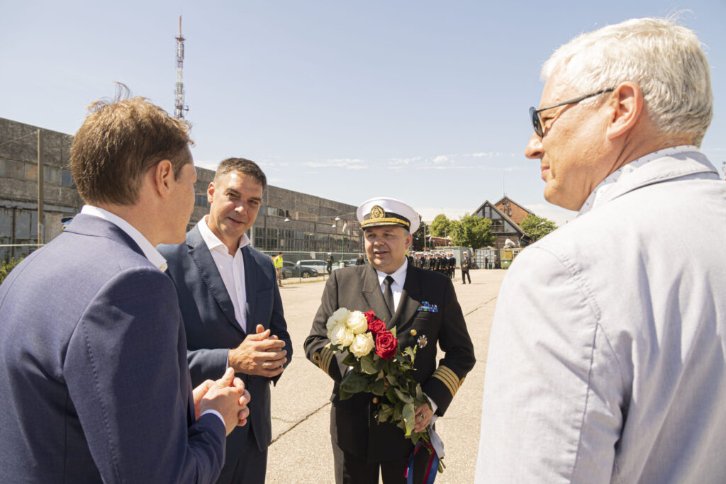 Svinīgajā Jūras spēku komandiera maiņas ceremonijā piedalījās Aizsardzības ministrijas parlamentārā sekretāre Baiba Bļodniece (AP), Nacionālo bruņoto spēku komandieris ģenerālleitnants Leonīds Kalniņš, bruņoto spēku regulāro spēku vienību komandieri, karavīri un aicinātie viesi.