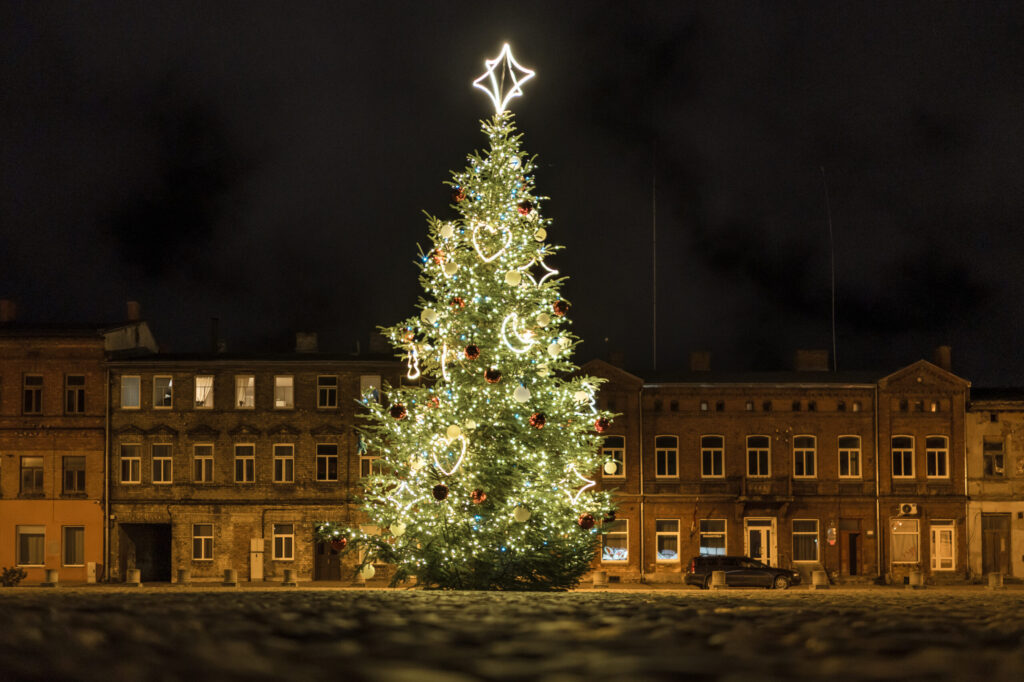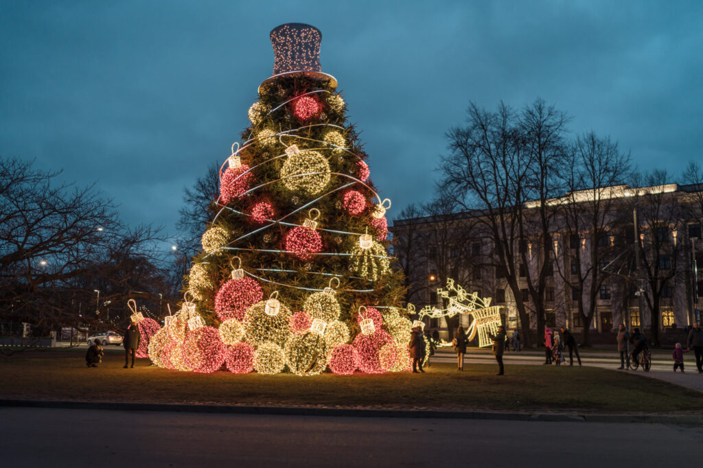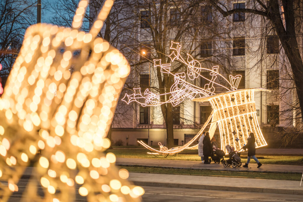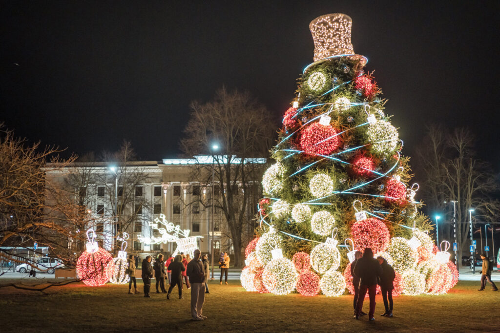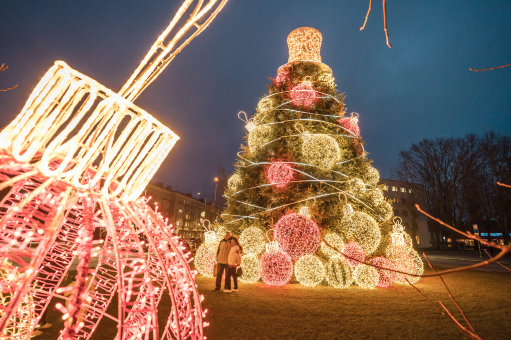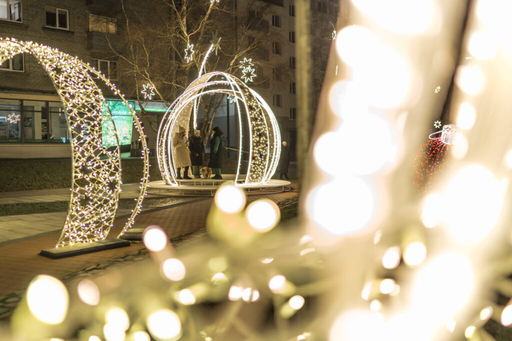 FOTO: Liepājā Ziemassvētku rotājumi ienes gaismu un brīnumu sajūtu