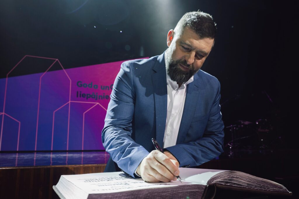 “Liepājnieki, tieši jūs esat pilsētas vērtīgākā dāvana. Jūs, kas ieguldāt savu enerģiju, sirdi un darbu pilsētas attīstībā! Šajos svētkos novēlu visiem mieru – var jau kalt lielus attīstības plānus, būvēt jaunus bērnudārzus, radīt spēcīgus uzņēmumus, ar pilnu jaudu mesties jaunos projektos. Var un vajag! Bet ja nebūs miers, šiem mūsu centieniem nebūs vērtības. Un šeit es nerunāju tikai par Krievijas izraisīto, nežēlīgo karu Ukrainā. Es runāju arī par mieru savā starpā – mieru mājās un ģimenē, darbā, pilsētā un pašiem savā valstī. Mierīgu, cieņpilnu līdzāspastāvēšanu un mieru pašiem ar sevi,” Liepājas 398. dzimšanas dienas vakarā sacīja Liepājas valstspilsētas domes priekšsēdētājs Gunārs Ansiņš.