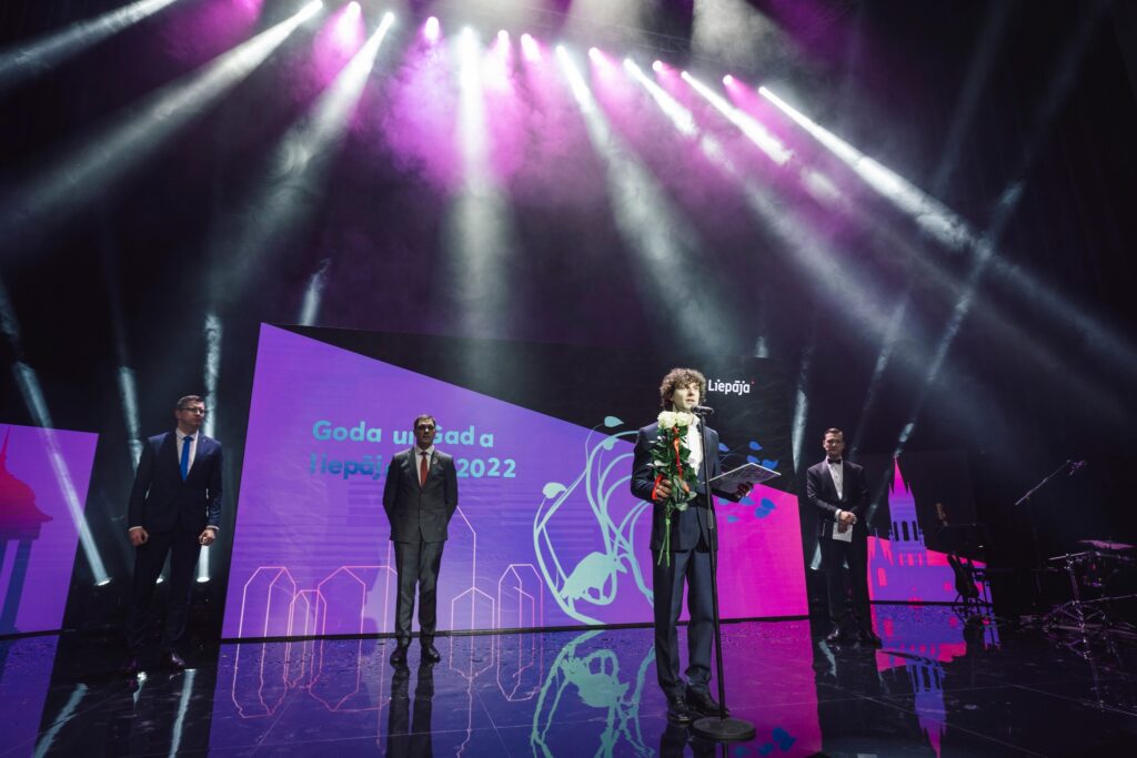 Svinīgajā apbalvošanas ceremonijā tituls “Gada liepājnieks 2022” piešķirts Liepājas Mūzikas, mākslas un dizaina vidusskolas pedagoģēm Ditai Baronai un Beatai Zariņai-Blaščinskai par personisko ieguldījumu un profesionāliem sasniegumiem, sagatavojot stīgu ansambli “Amber Strings” dalībai Pasaules izpildītāju mākslas čempionātā “World Championships of Performing Arts” Losandželosā, ASV.