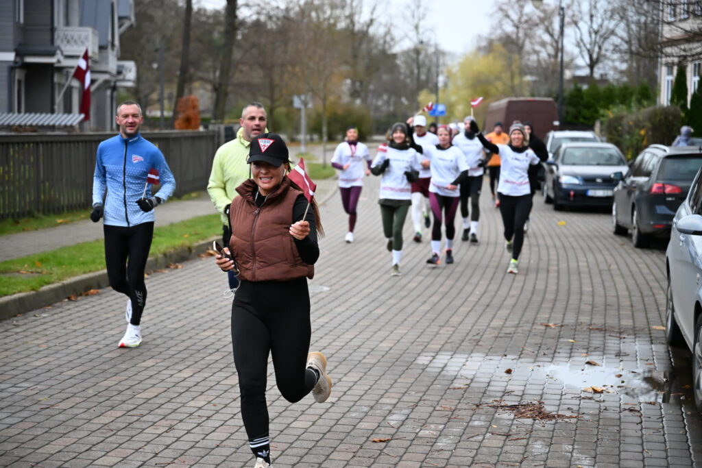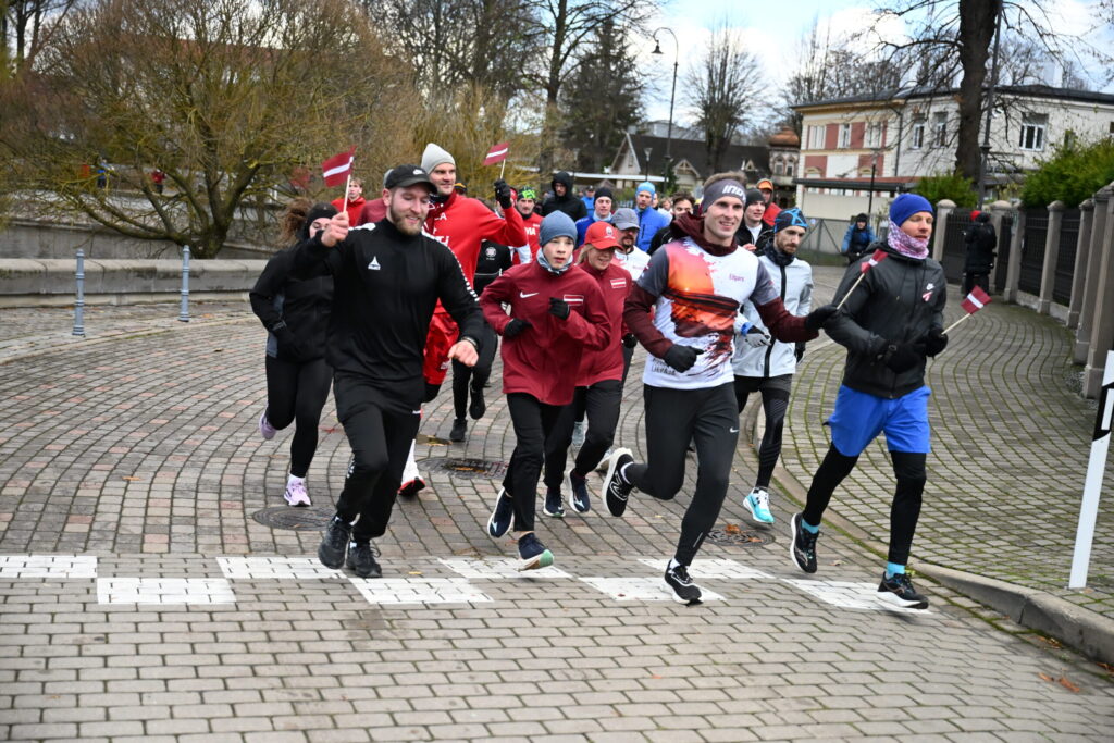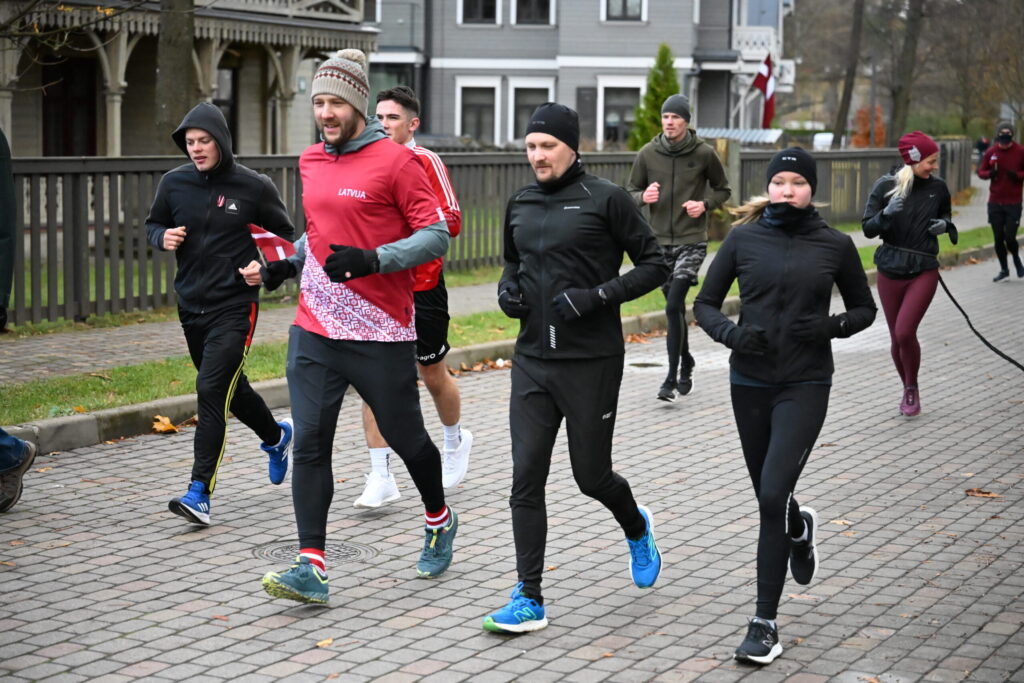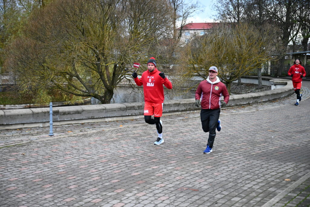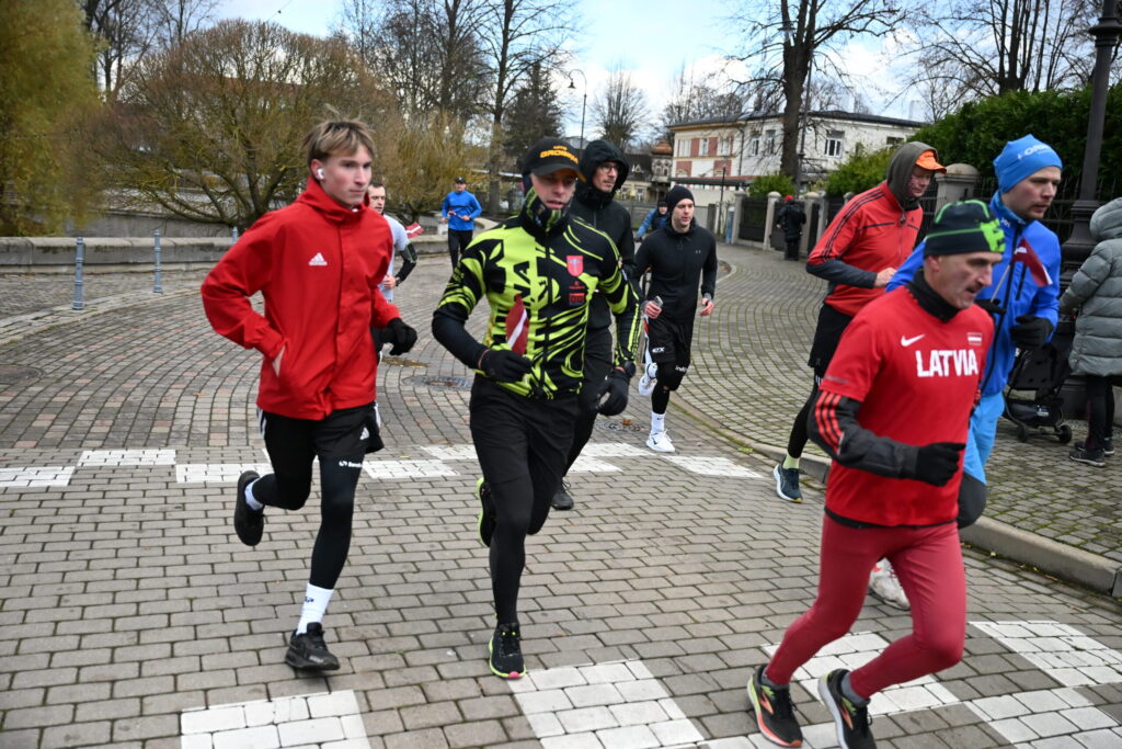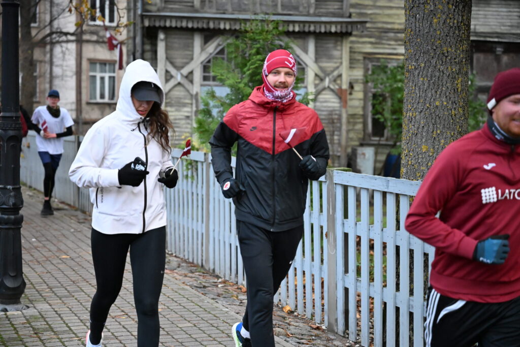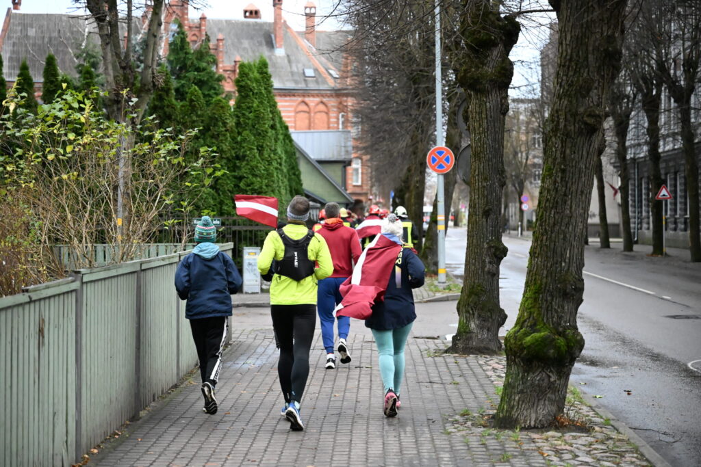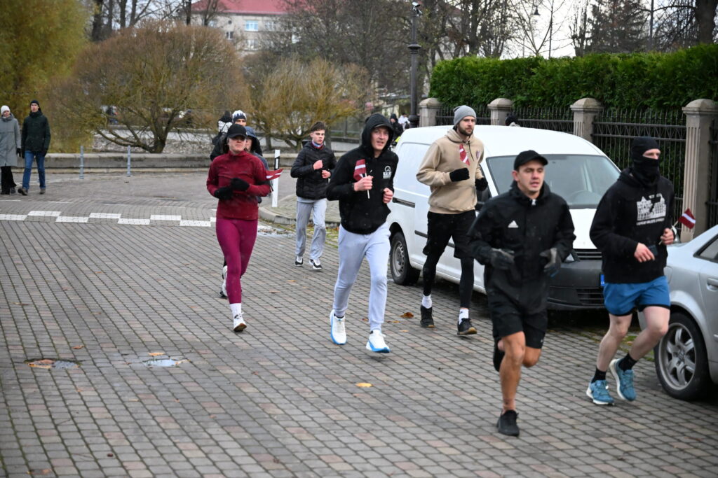FOTO: Liepājas ielās 18. novembrī kuplā skaitā izskrien Latvijas kontūru