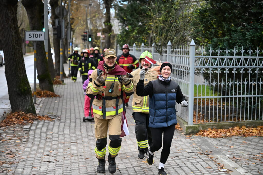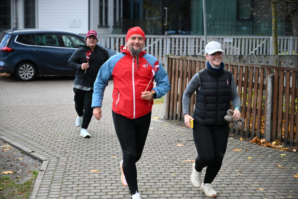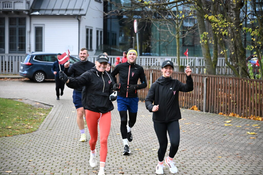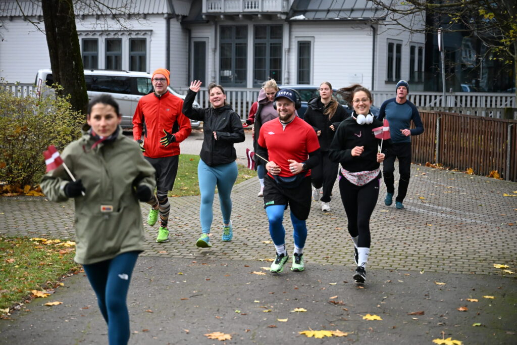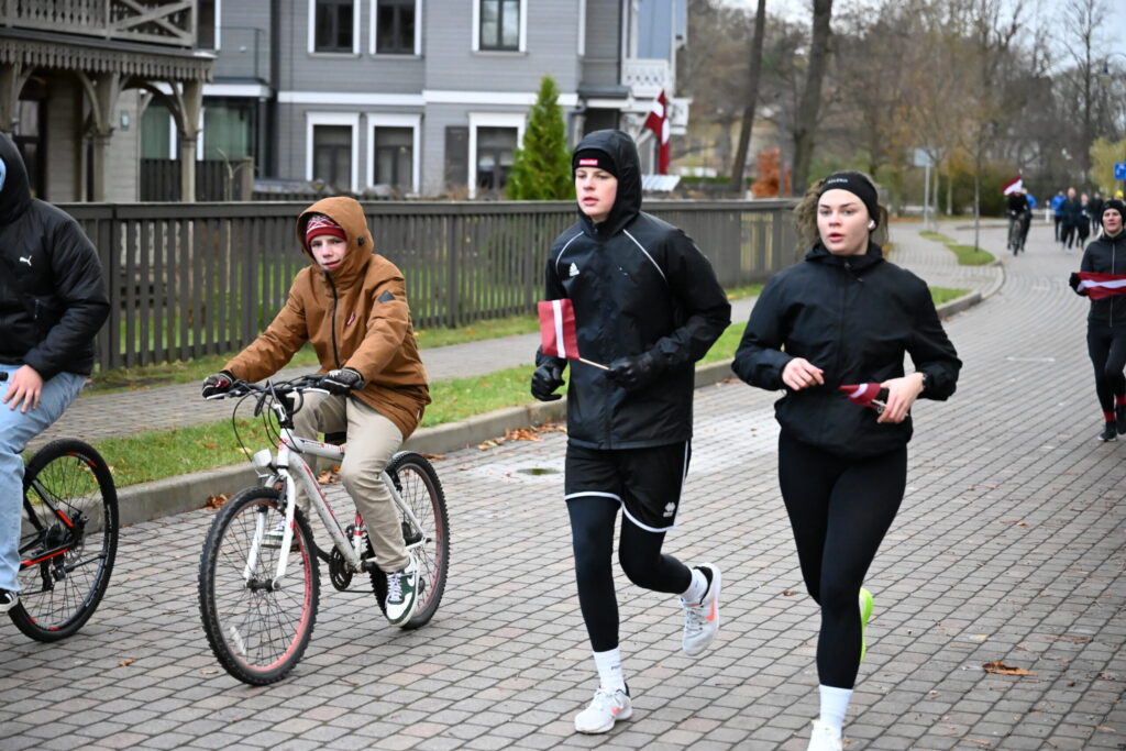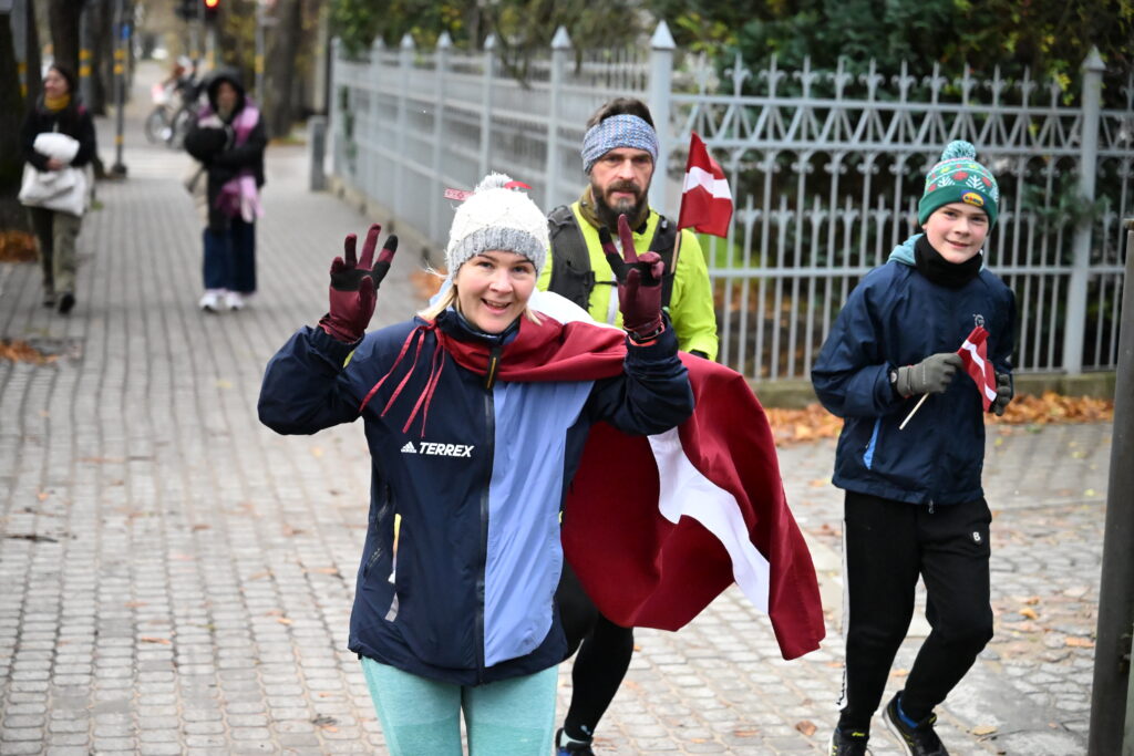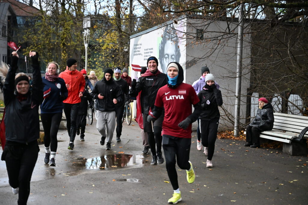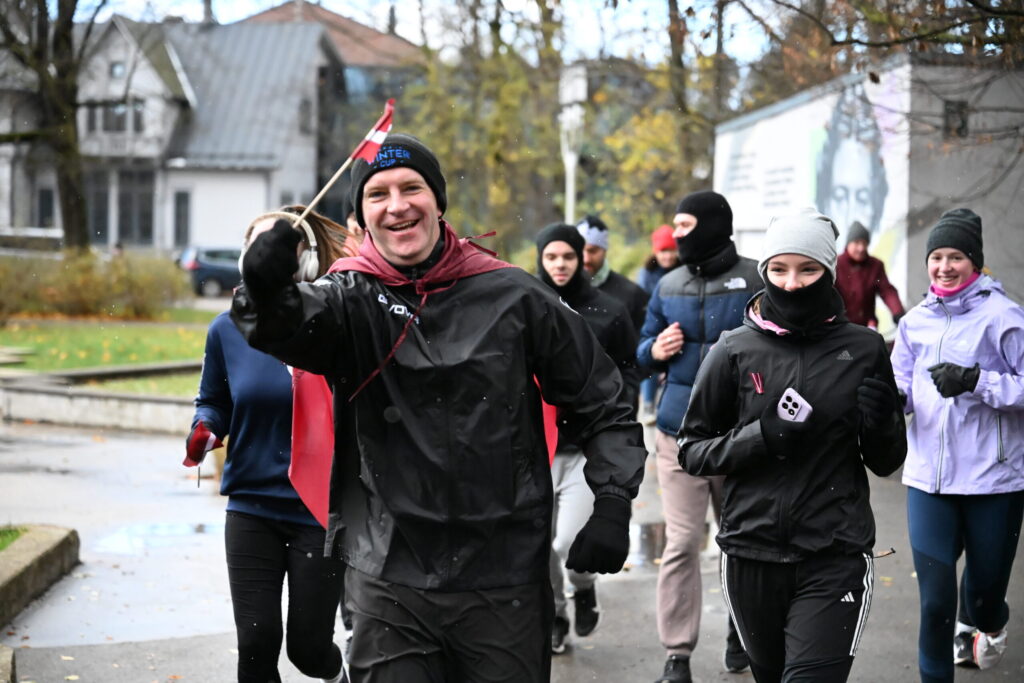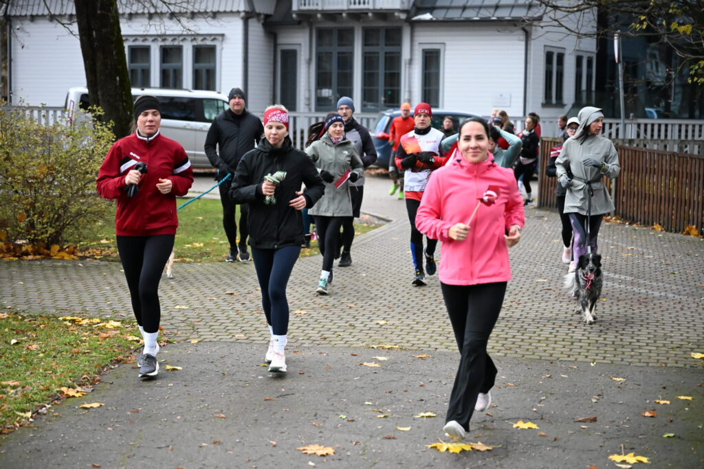 FOTO: Liepājas ielās 18. novembrī kuplā skaitā izskrien Latvijas kontūru