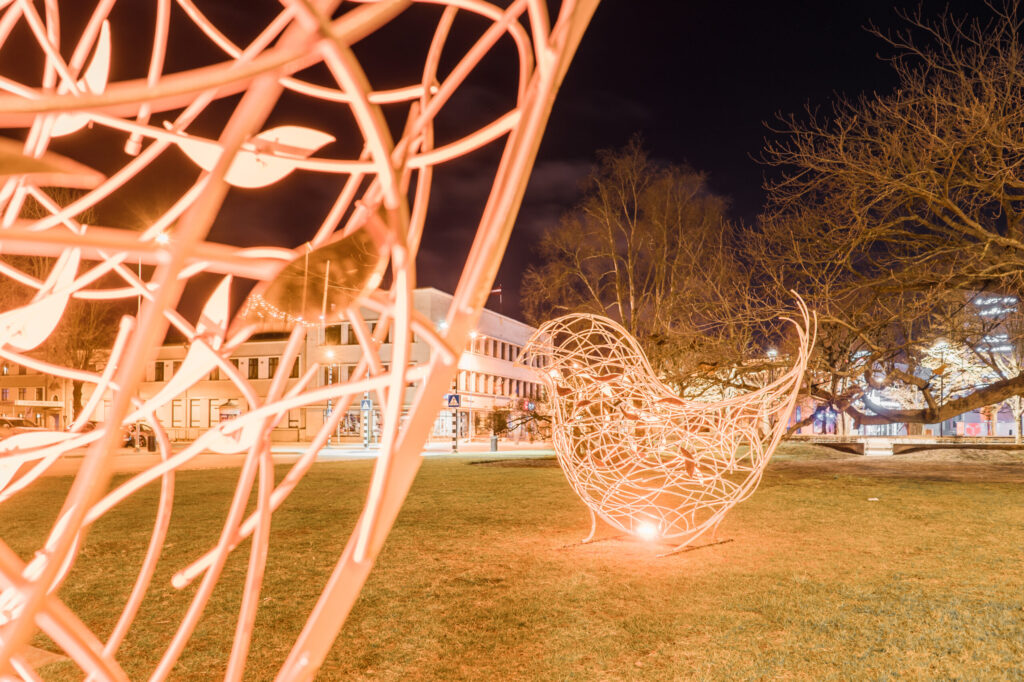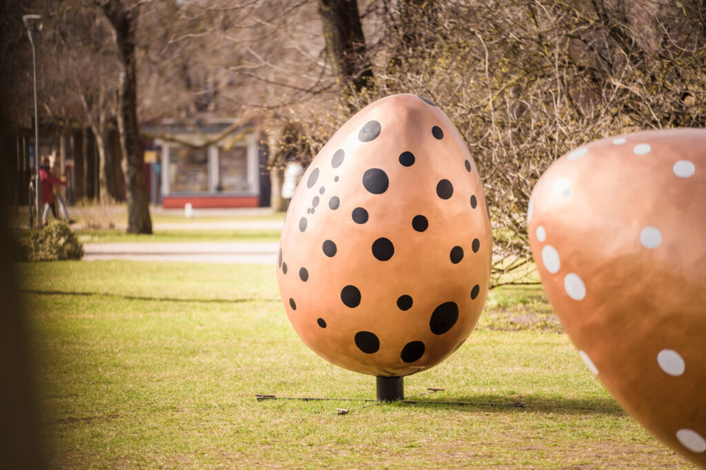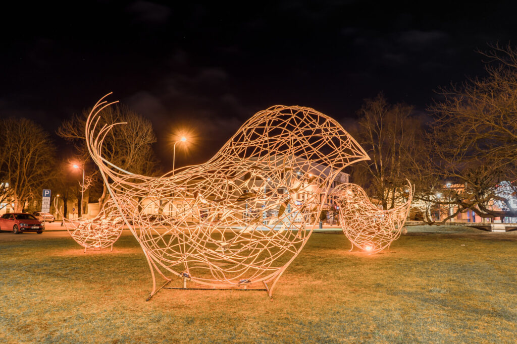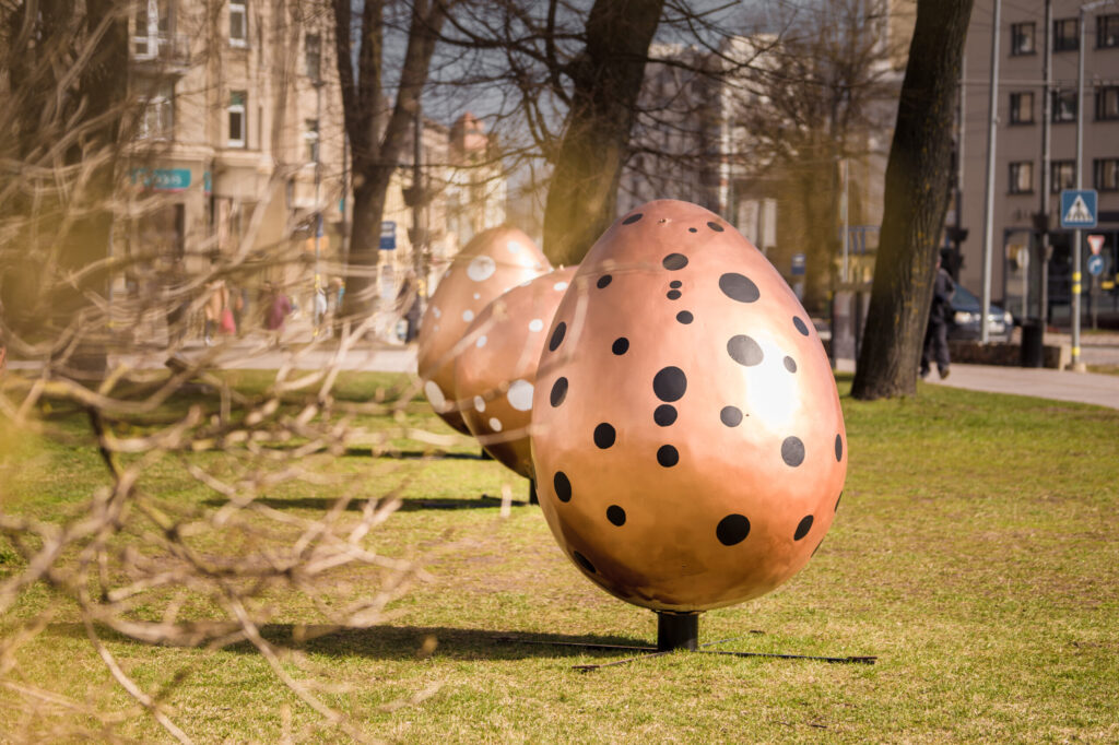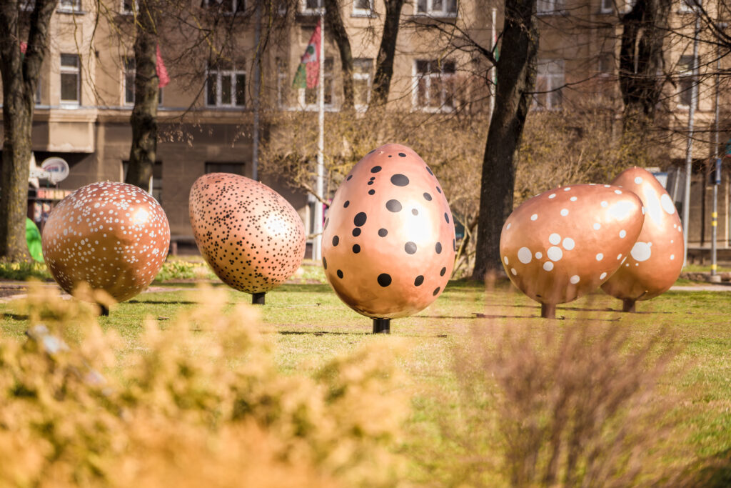 Kā katru pavasari, tuvojošos Lieldienu noskaņu papildina pilsētas vides rotājumi – Rožu laukumā un Kurzemes skvērā saripinātas raibas olas un salidojuši čivinoši putnu silueti, kuri spoguļojas saules staros. Šogad svētkiem par godu putnu saime ir kļuvusi kuplāka un izmēros daudzveidīgāka.