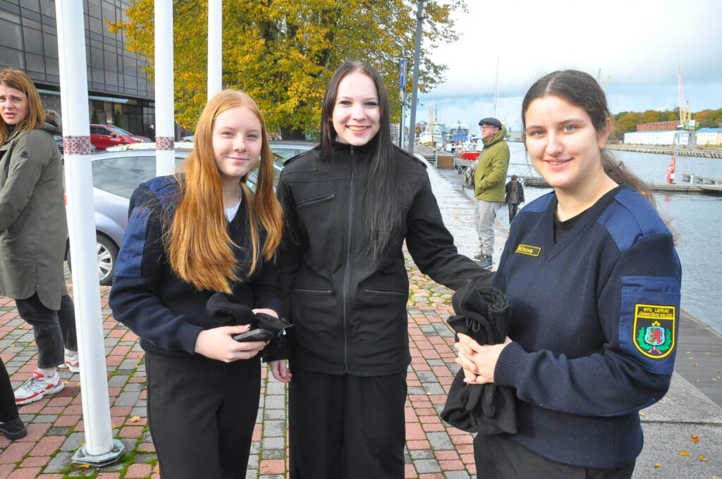 FOTO.VIDEO: Liepājas Jūrniecības koledžas pirmkursnieki jūrā svinīgi saņem uzplečus