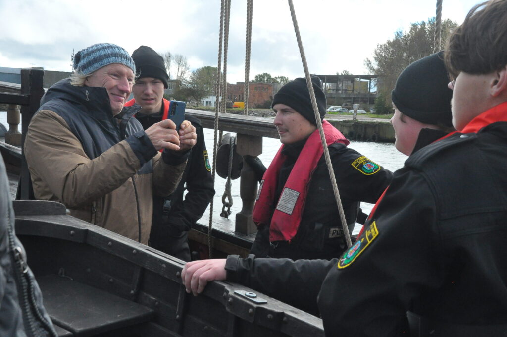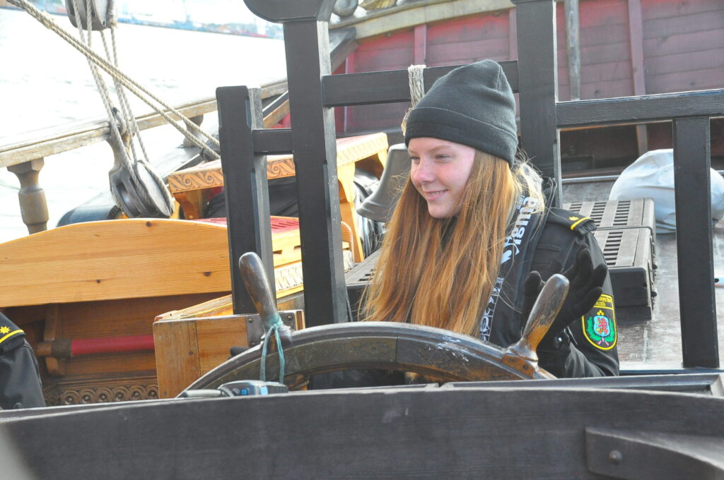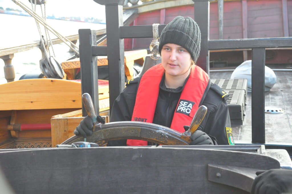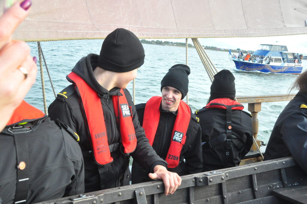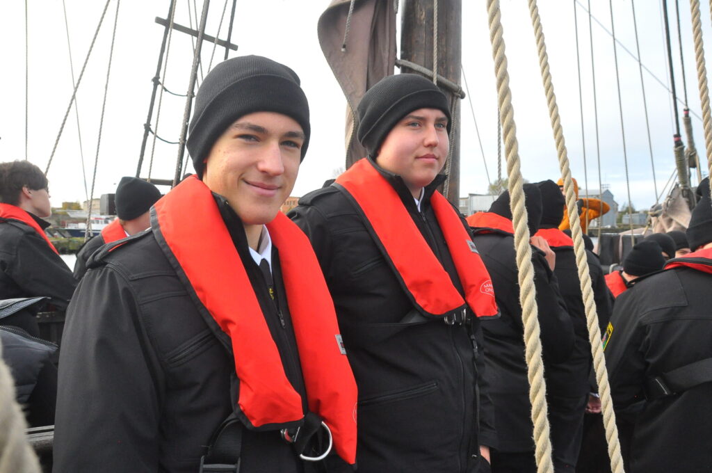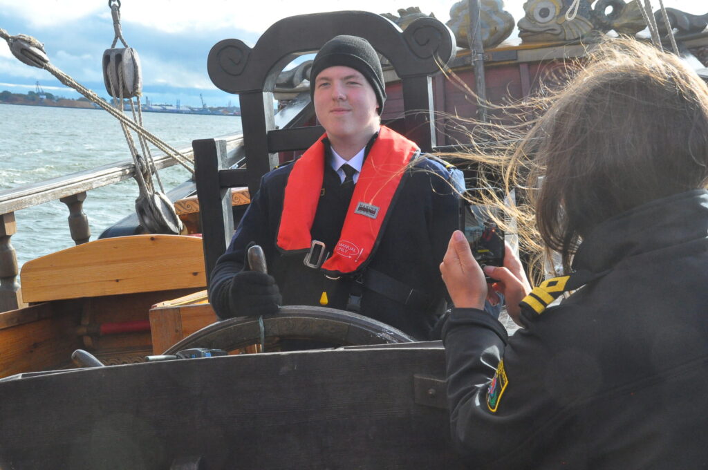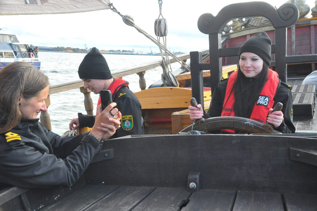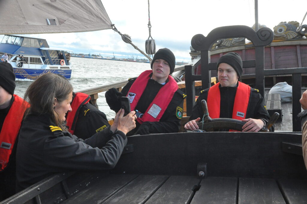 Pirmkursnieki uz kuģa uzkāpa jahtu ostā. Turpat bija arī otrais kugis “Discovery”, ar kuru līdzās devās audzēkņu vecāki, lai svinīgo attalumu vērotu no neliela attāluma. Portāls “ReKurZeme” jūrā devās kopā ar topošajiem stūrmaņiem.