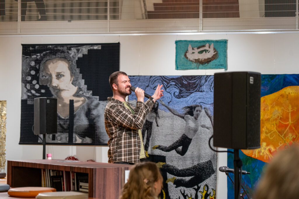 Ņemot vērā telpas eksponēšanas specifiku, izstādē redzamas plaknei veidotas tekstīlijas, kas ir neliela daļa no LMA tekstila specialitātē apgūstamā. Darbi radīti klasiskā gobelēna, žakardgobelēna, vilnas filcējuma, taftinga, izšuvuma un autortehnikās. Autori: Sintija Pujāte, Jelizaveta Gordejeva, Sabīne Lagzdiņa, Ieva Lapiņa, Patrīcija Paula Zvejniece, Kate Putniņa, Monta Beca, Terēze Juškus, Ieva Krūmiņa, Irēna Andrejeva, Elīna Ģibiete. Izstādes ekspozīciju sagatavoja: LMA Tekstila katedras vadītāja Elīna Ģibiete.
