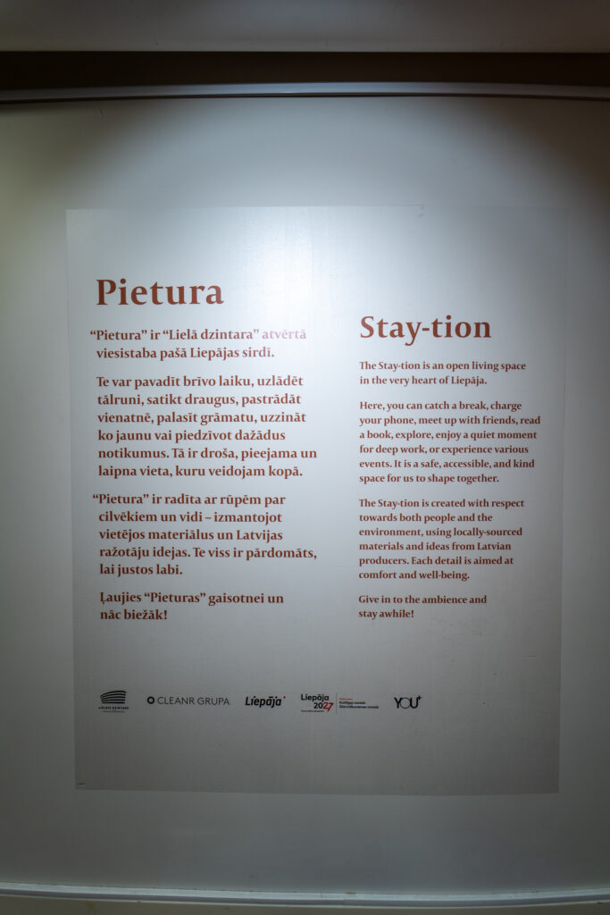 “Mēs vēlamies ar laiku mainīt cilvēku iespaidu par koncertzāli. Zinām, ka šeit bieži vien notiek smalki pasākumi ar sarkano paklāju, un daļai cilvēku tas liek domāt – šī vieta nav pieejama visiem. Mēs to vēlamies mainīt, tādēļ esam izveidojuši telpu, kuru ikviens var izmantot ikdienā neatkarīgi no vecuma un interesēm. “Pietura” ir arī daļa no mūsu kopienas programmas – iepriekš piesakoties, telpu varēs izmantot bez maksas pasākumu rīkošanai dažādām sabiedrības iniciatīvām. Jāsaka milzīgs paldies mūsu sadarbības partneriem – uzņēmumam “CleanR Grupa”, nodibinājumam “Nodibinājums Liepāja 2027” un citiem atbalstītājiem, bez kuriem nebūtu iespējams realizēt šo projektu,” telpas atklāšanā sacīja SIA “Lielais Dzintars” valdes priekšsēdētājs Timurs Tomsons.