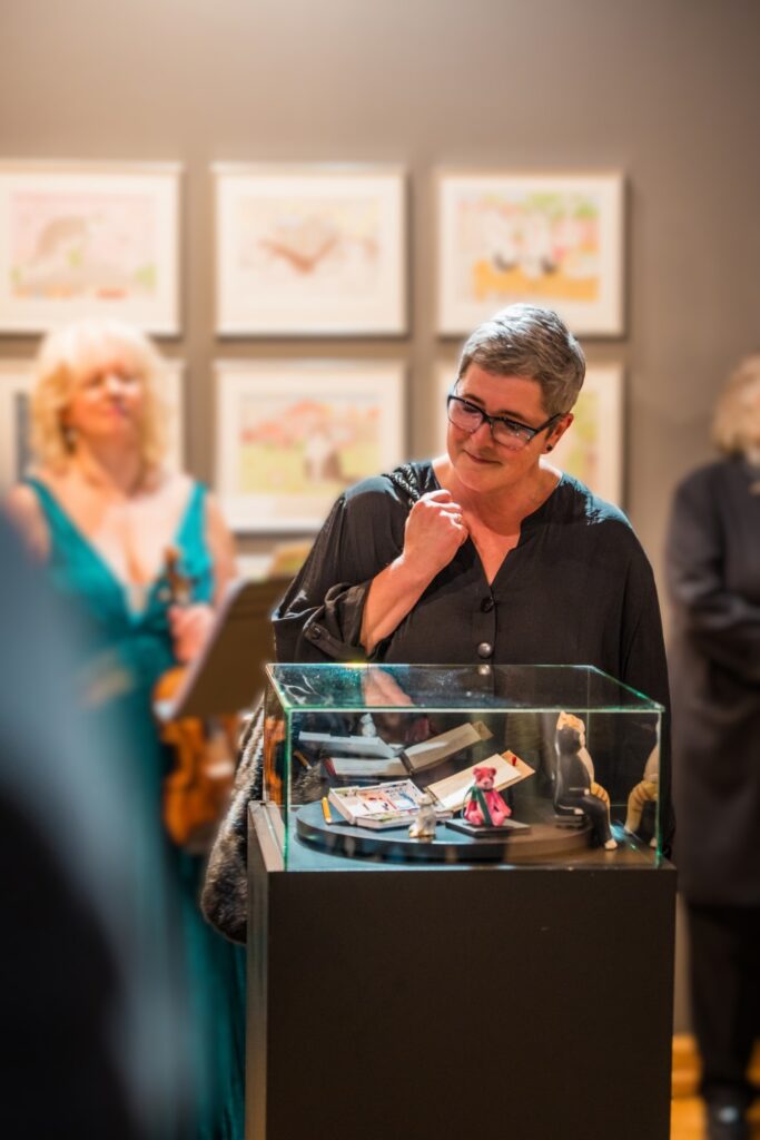 Māksliniecei doma par izstādi Liepājas muzejā radās, klausoties Kaķīša rudens murrā dziesmiņu, domājot par mīļajiem autoriem, kuru grāmatas viņa ir ilustrējusi, un gaidot rakstnieces Ineses Zanderes dzejoļu grāmatu “Kaķa vijole”, kas drīzumā iznāks izdevniecībā “Liels un mazs.”