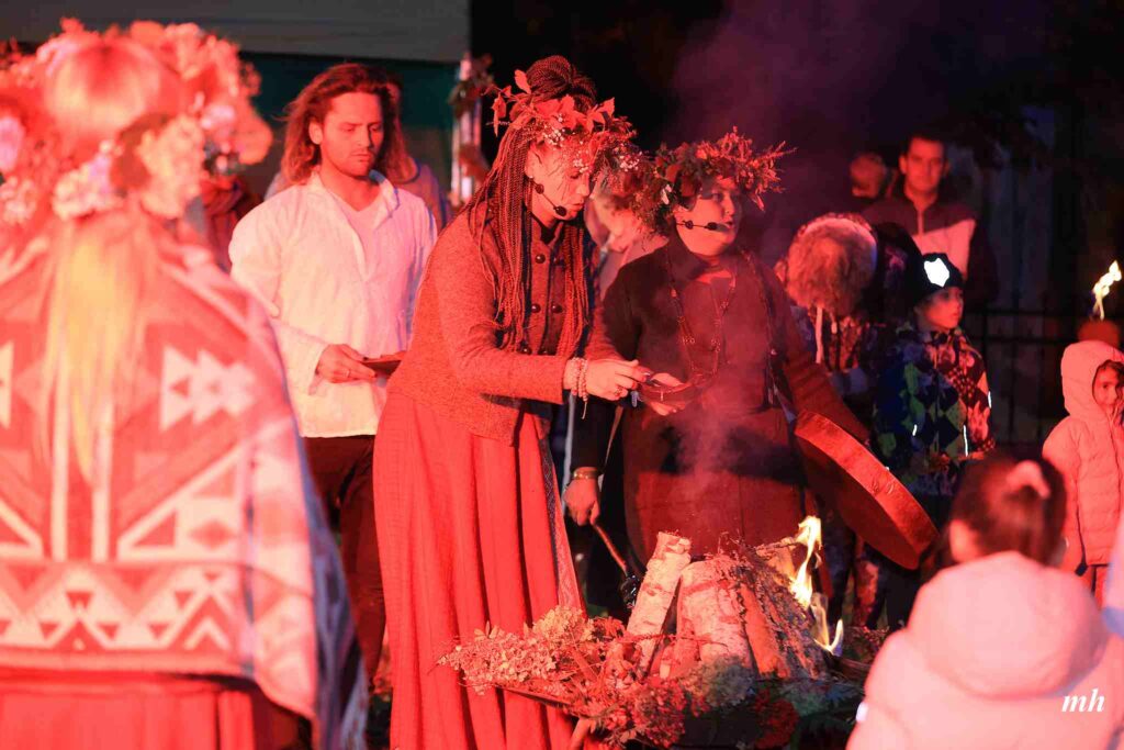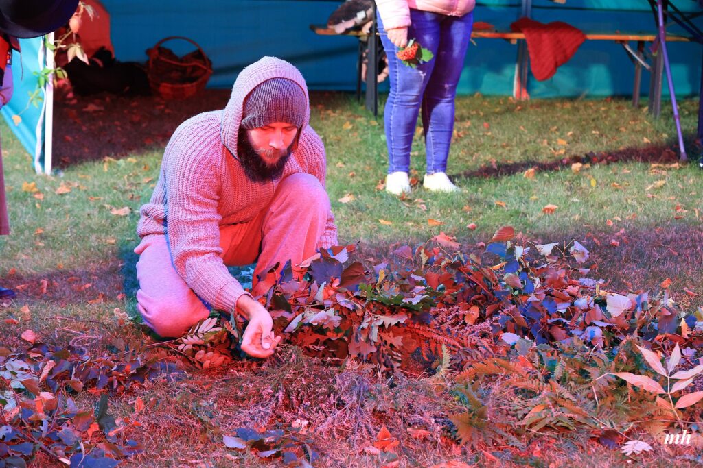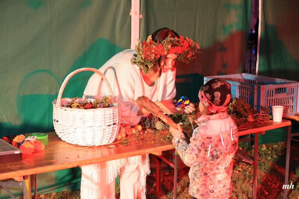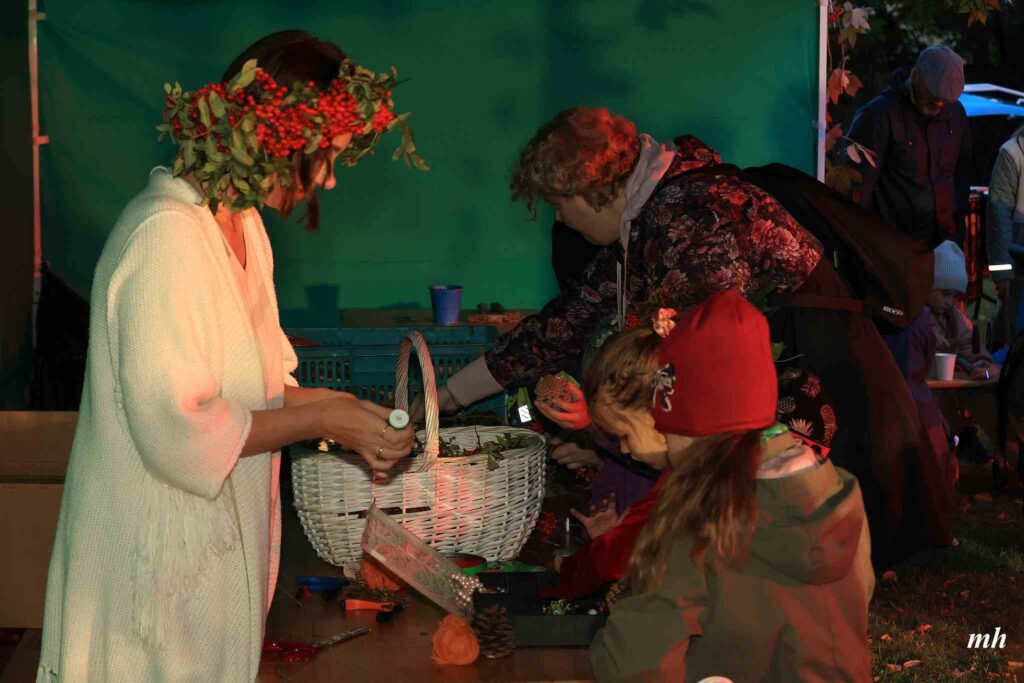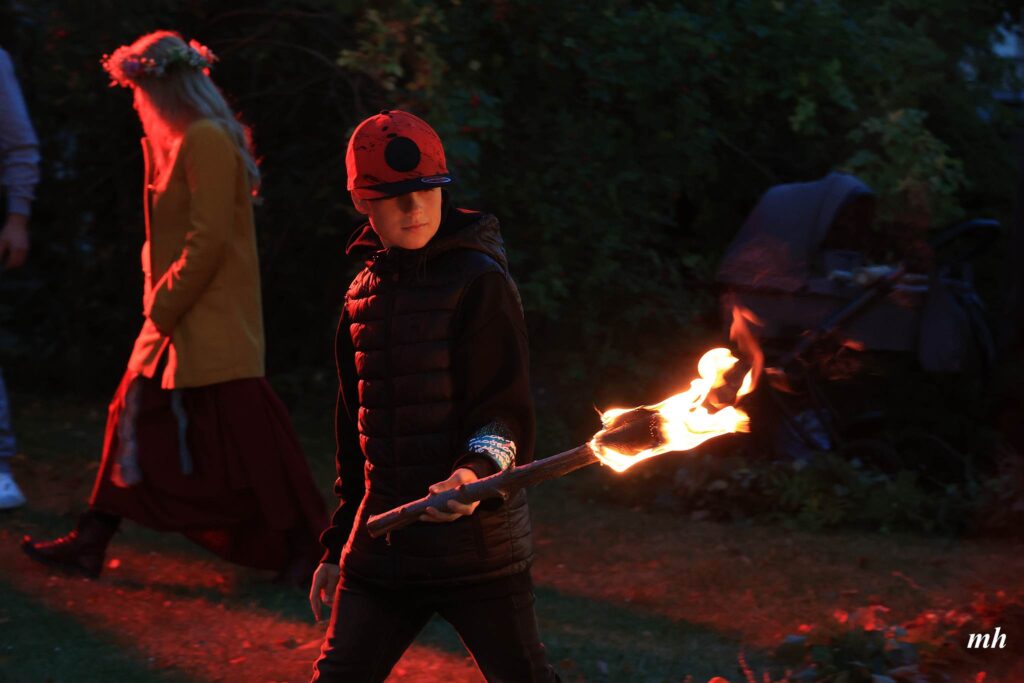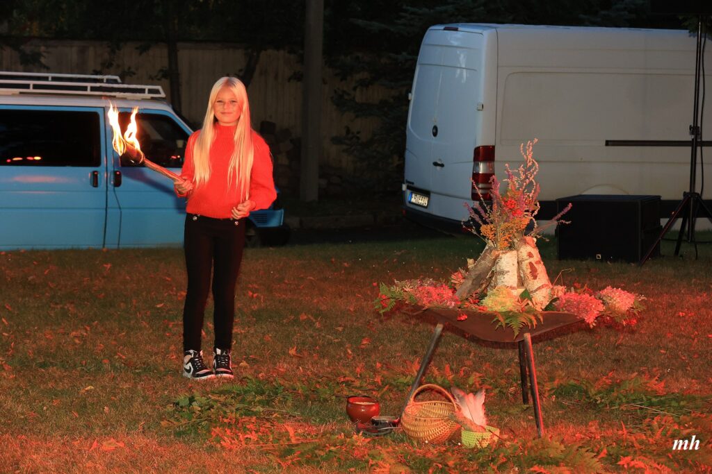 Vakara gaitā varēja darināt lāpas,vīt augu viju, uzzināt ugunsrituāla norises pamatprincipus, kopīgi kurt guni un svinēt Rudens saulgriežus. Dziedāt spēka dziesmas, iemācīties un kopā dejot latvju dančus, un baudīt uguns performanci.