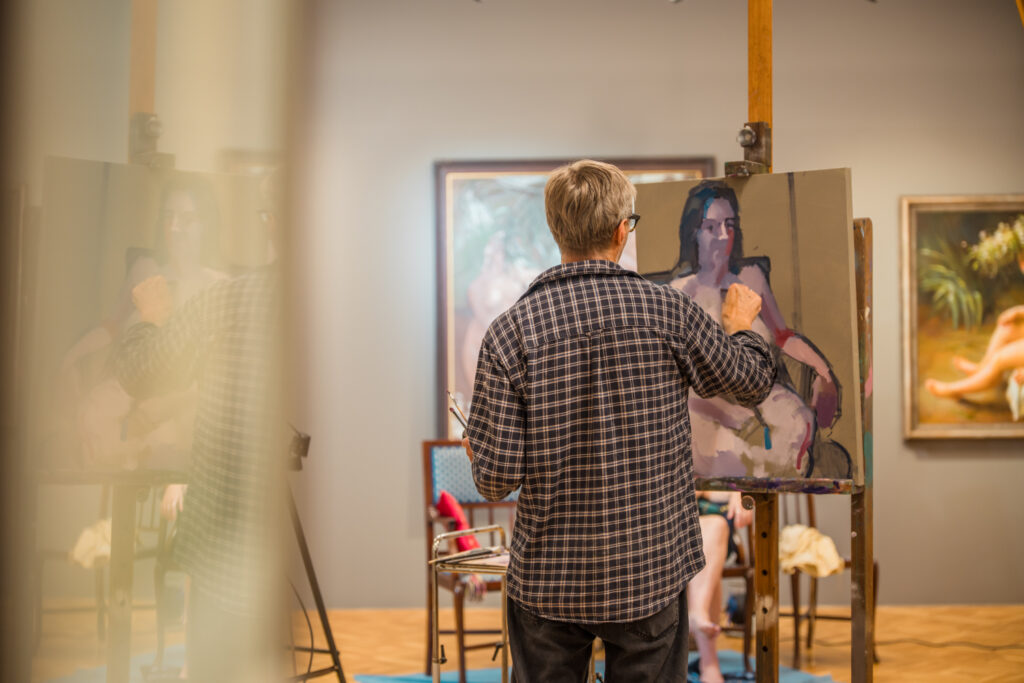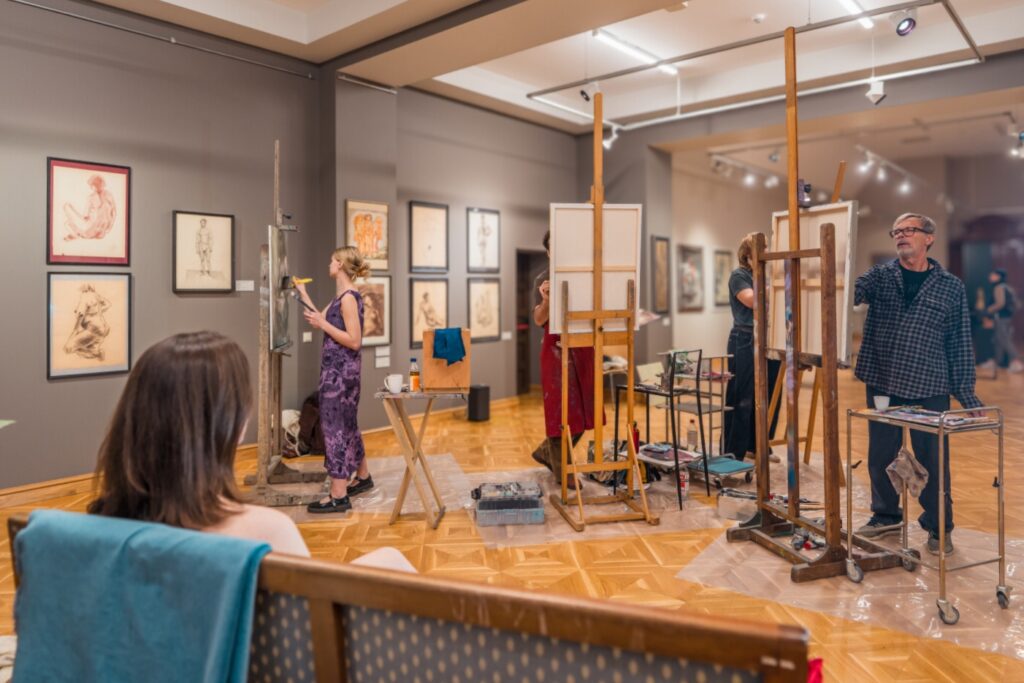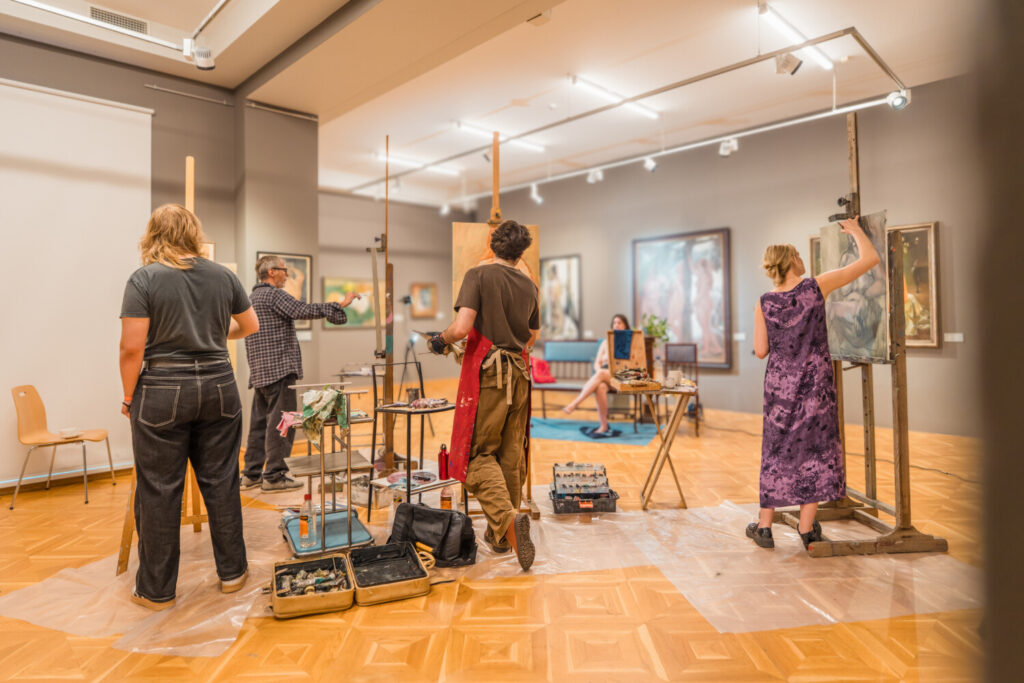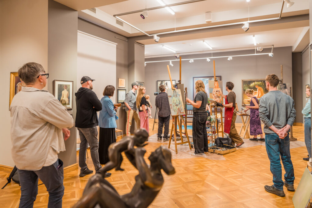 Kopā mākslinieki muzeja lielajā izstāžu zālē radīja īpašu radošo atmosfēru, kurā ikviens varēja vērot aktu tapšanas procesu – no pirmajām līnijām līdz gatavam mākslas darbam.