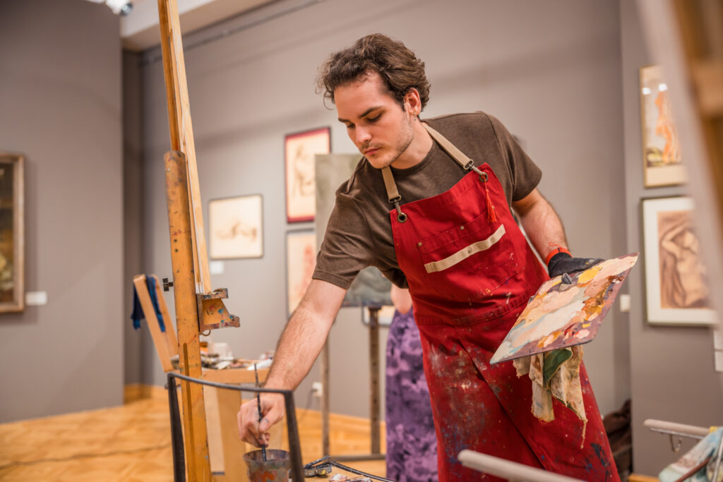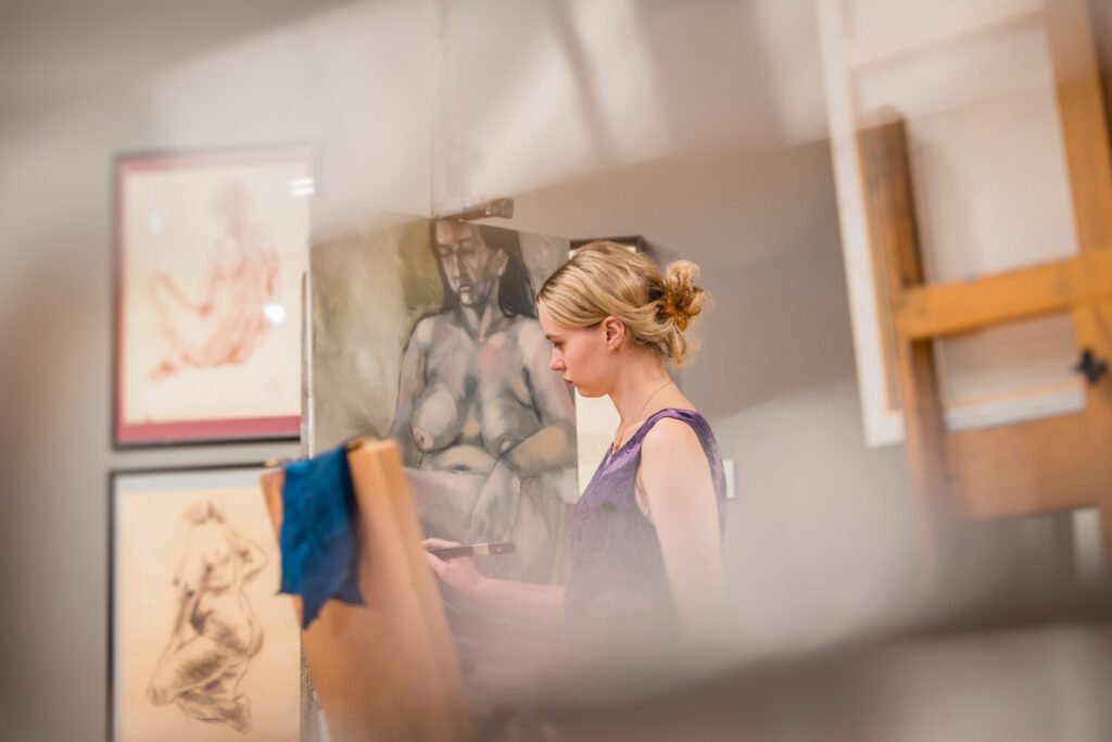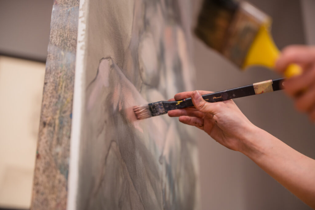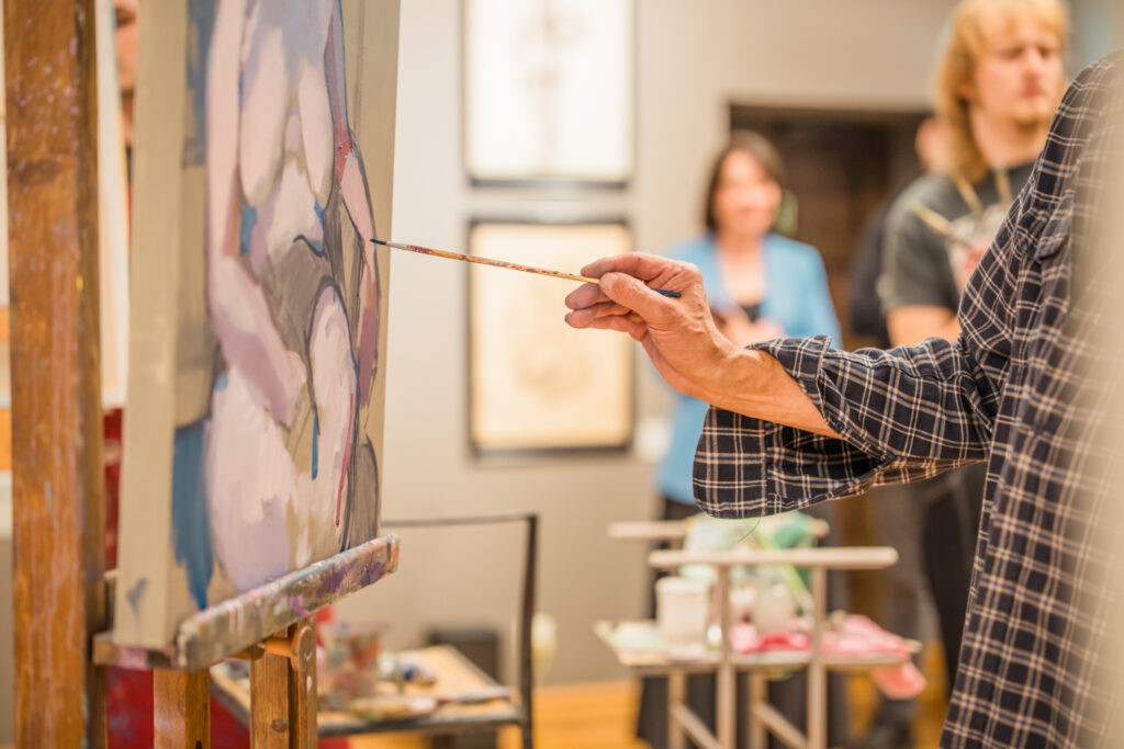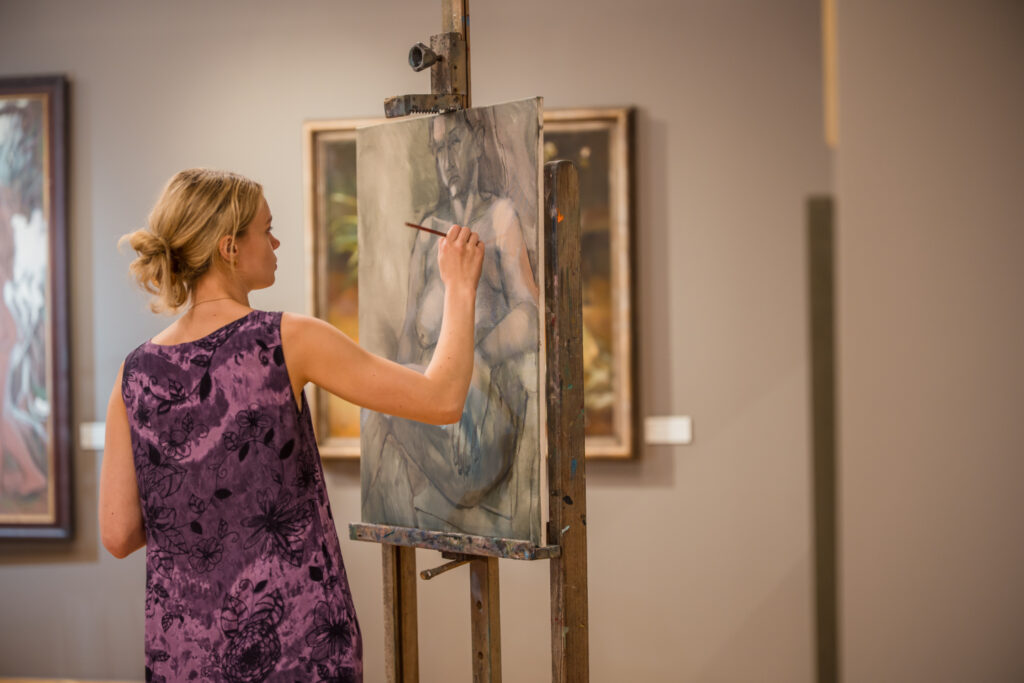 Kopā mākslinieki muzeja lielajā izstāžu zālē radīja īpašu radošo atmosfēru, kurā ikviens varēja vērot aktu tapšanas procesu – no pirmajām līnijām līdz gatavam mākslas darbam.
