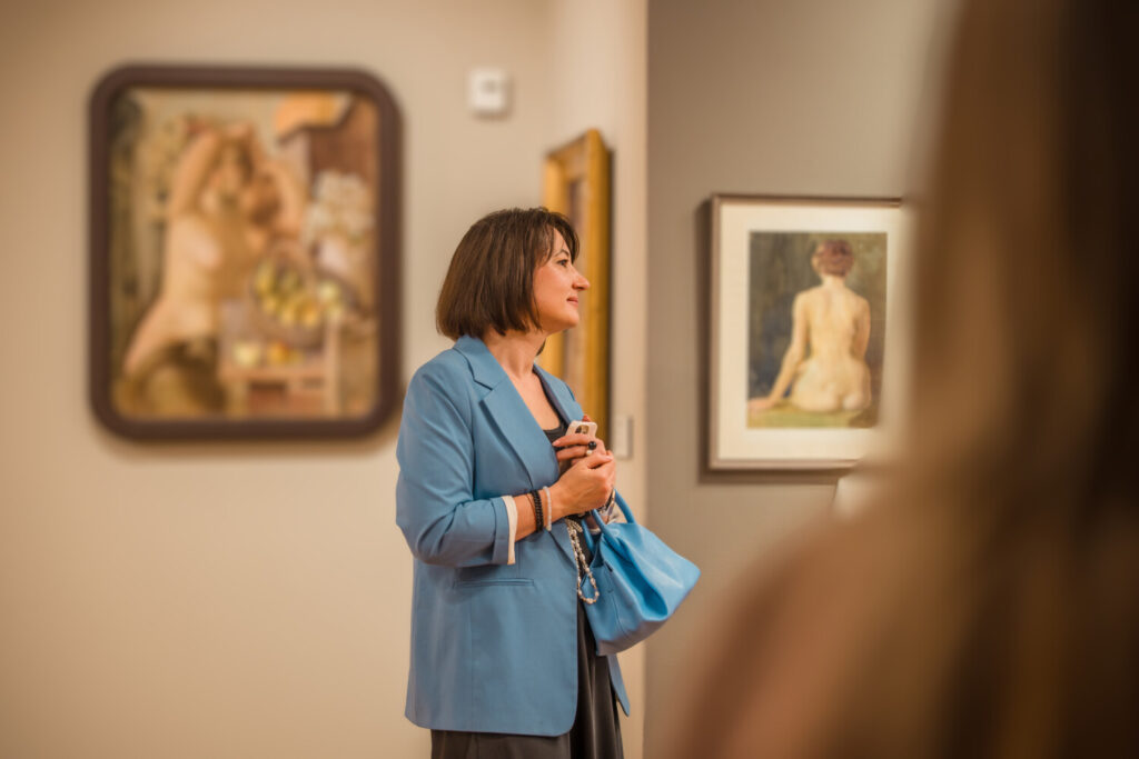 Izstādes vairāk nekā 60 mākslas darbi atklāj cilvēka ķermeņa skaistumu, kā arī tā spēku un trauslumu. Tos radījuši izcili gleznotāji, grafiķi un tēlnieki: Baņuta Ancāne, Maija Māra Baltiņa, Laimonis Blumbergs, Rasma Bruzīte, Ansis Cīrulis, Inta Dobrāja, Nora Drapče, Nikolajs Drozdovskis, Vija Dzintare, Harijs (Hermanis) Eberšteins, Andrejs Ģērmanis, Oļģerts Jaunarājs, Margareta Jaggi, Edvīns Kalnenieks, Aldis Kļaviņš, V. Kollins, Ella Leimane, Vija Maldupe, Valdis Mackars (MIC), Anita Meldere, Felicita Pauļuka, Viktorija Pelše, Jāzeps Pīgoznis, Velta Plaudis, Pēteris Postažs, Janis Rozentāls, Iveta Rozenblūma, Georgs Šenbergs, Valters Uzticis, Matīss Zavickis, Maija Začeste, Zenta Zvāra, Jānis Zuntaks, Māra Zītare, Jānis Žīmants un Rita Zēbeka.