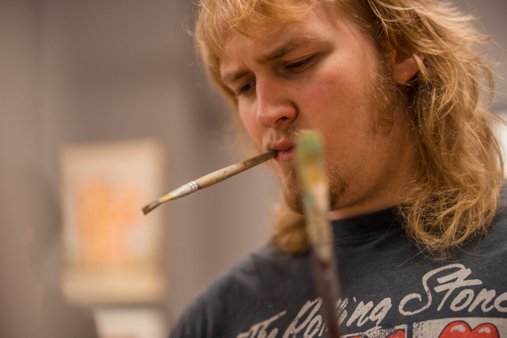 Pie molbertiem darbojās mākslinieks Uldis Rubezis un viņa vadītās studijas “Strūklaka” audzēkņi – Sofija Bumbule, Leons Skudrītis un Fandango Fonteins Kalita.