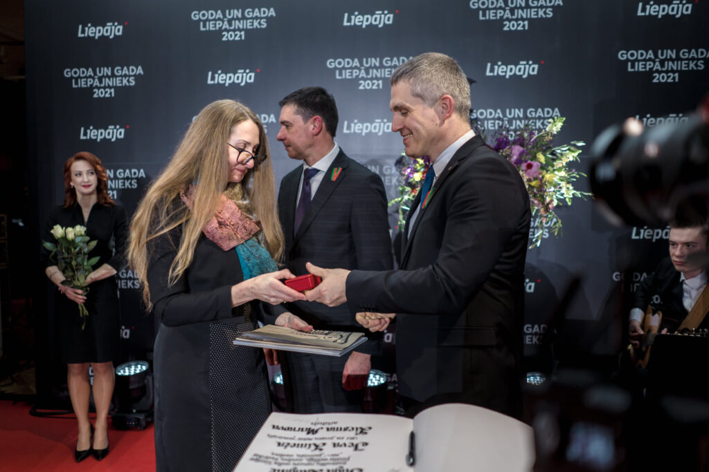 Titulu “Gada liepājnieks 2021” par profesionālu un atbildīgu plaša mēroga vakcinācijas pret Covid-19 organizēšanu riska grupas iedzīvotājiem Liepājā un Dienvidkurzemes novadā saņēma ģimenes ārste Laila Atiķe, bet par nozīmīgo darbu logopēdijas pamatu izveidē Liepājas izglītības iestādēs un ieguldījumu topošo logopēdu praktiskajā apmācībā darbam ar bērniem – logopēde Astra Austra Bāra.