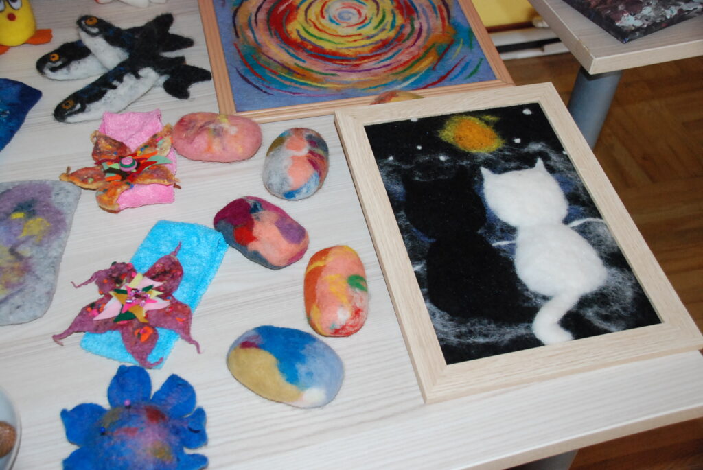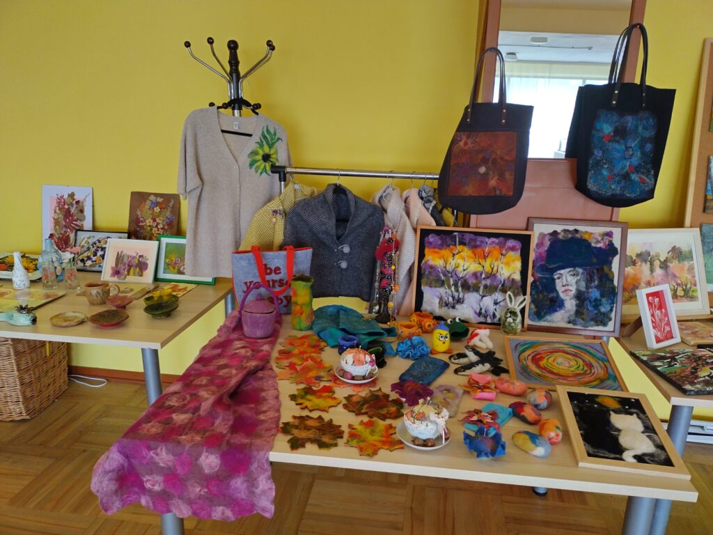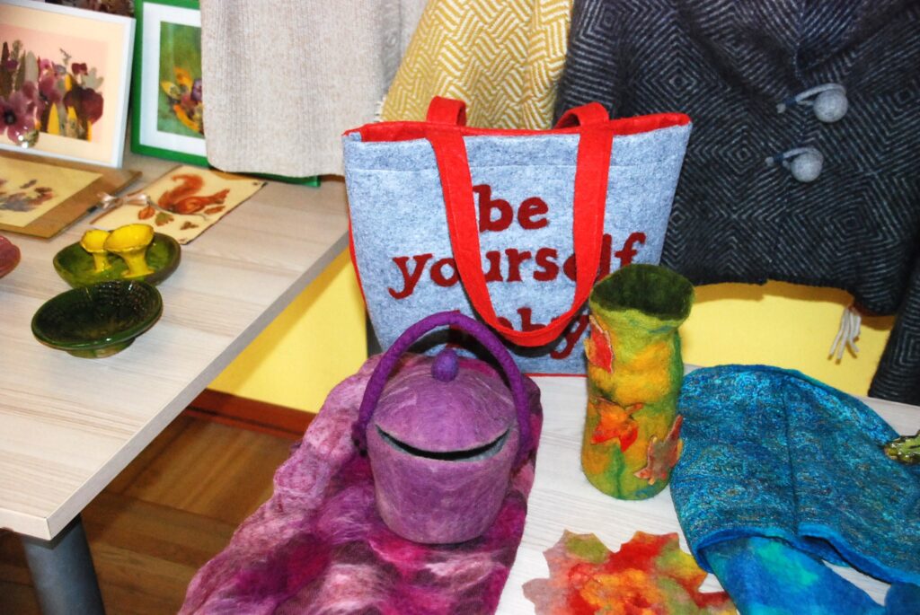 Izstādē skatāmi klūgu pinumi, filcēšanas, floristikas un keramikas darbi.