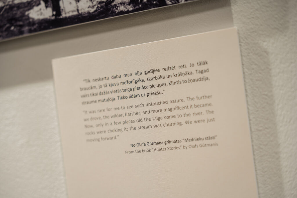 Izstāde ataino dzejnieka Olafa Gūtmaņa deviņas ekspedīcijas uz Sibīriju, kurās viņš devās medībās un zvejā, vienlaikus iepazīstot un dokumentējot šo savdabīgo zemi. Fotogrāfijās iemūžināta gan Sibīrijas dabas pirmatnība, gan tās stāsti.