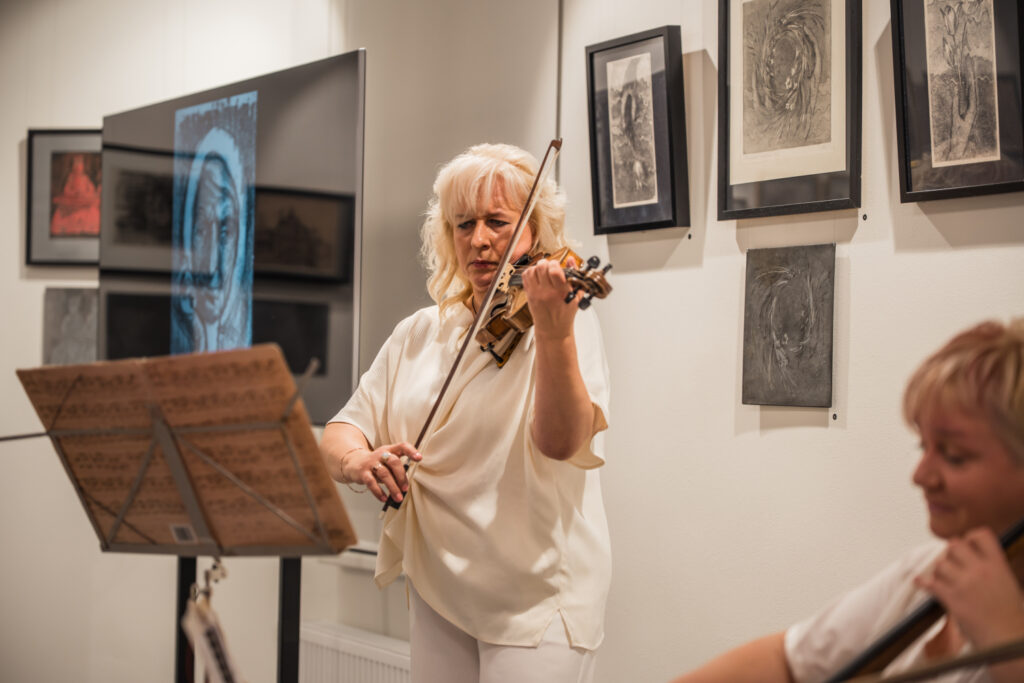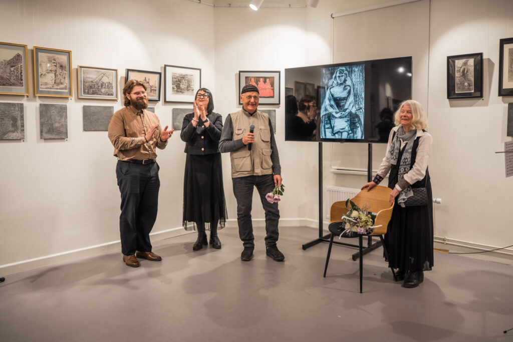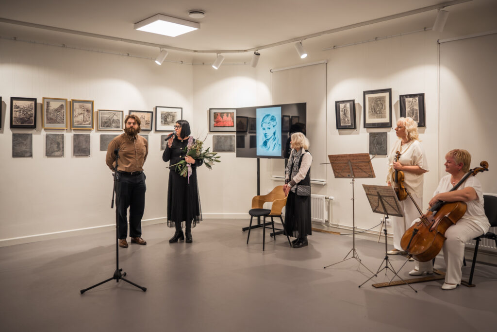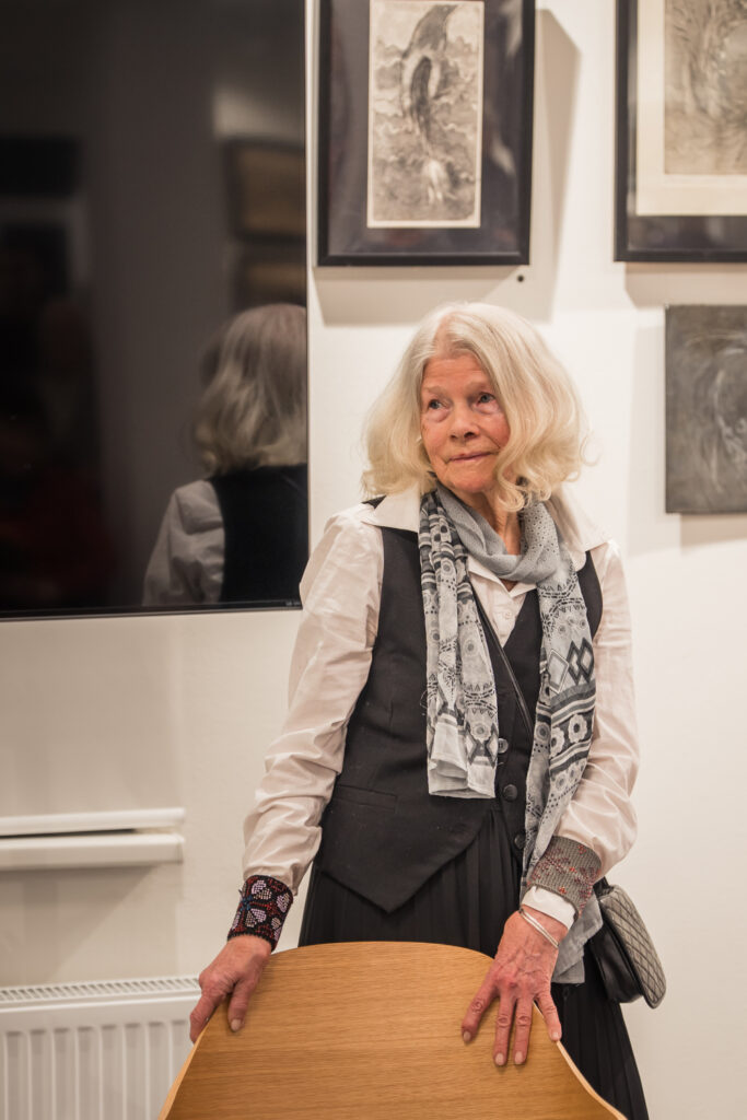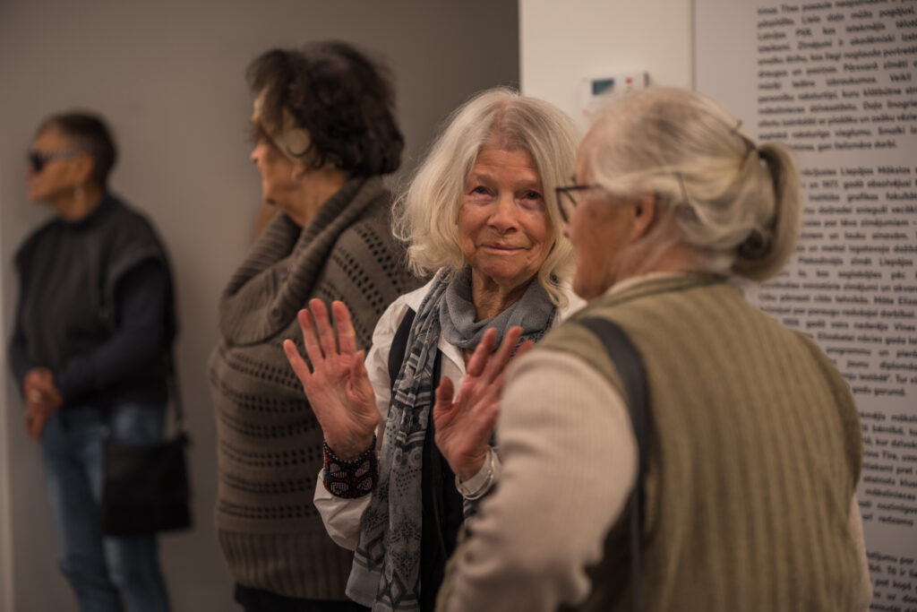 Māksliniece sirsnīgi uzrunāja klātesošos – ar tādu pašu vieglumu un smalkumu, kas raksturīgs arī viņas darbiem –, stāstot gan par saviem mākslas darbiem un cilvēkiem, gan par savu dzimto pilsētu Liepāju, kas viņu iedvesmojusi. Arī mākslinieki Aldis Kļaviņš un Dzintra Vīriņa, kā arī izstādes kurators Gustavs Zālītis dalījās personīgajā pieredzē, stāstot par kopīgo sadarbību un mākslinieces radošo personību, raksturojot viņu kā spilgtu Liepājas mākslas paraugu, portālu “ReKurZeme” informē Liepājas muzeja sabiedrisko attiecību speciāliste Rasa Zālīte.