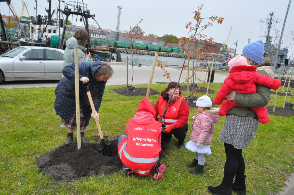 Piektdien, 9. maijā, Liepājas ostas promenādē Eiropas dienas dārza svētku laikā ikviens varēja piedalīties ābelīšu stādīšanā.