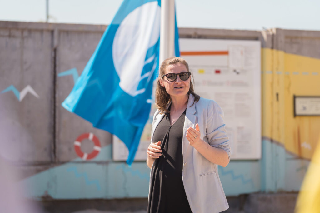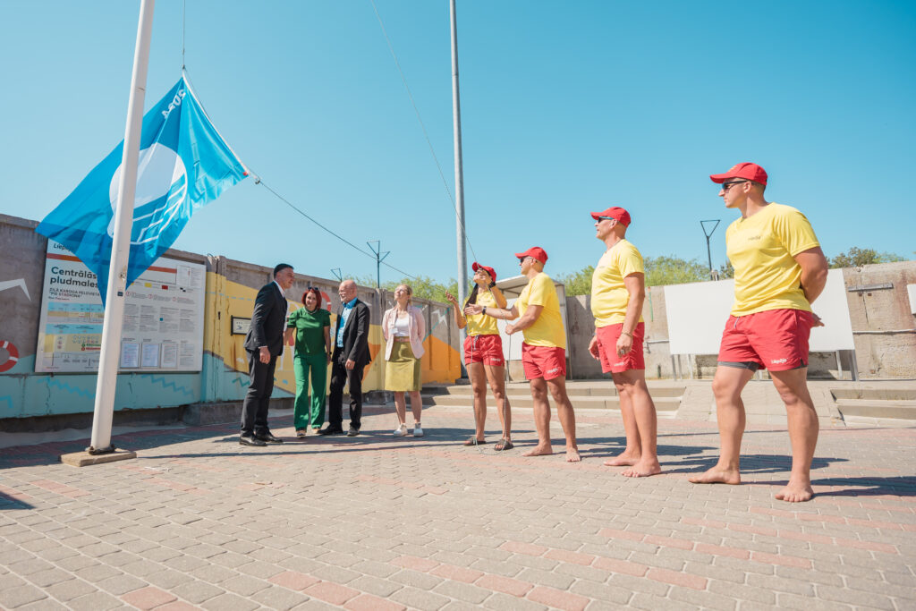 Pēcpusdienā pilsētas centrālajā pludmalē pie Glābšanas stacijas tika pacelts Liepājai piešķirtais Zilais karogs, kas ir pasaulē populārākais un atzītākais tūrisma ekosertifikāts. Liepājas iesaiste Zilā karoga programmā ilgst aptuveni 20 gadus un tā simbolizē pašvaldības un institūciju ieguldīto darbu vides vērtību saglabāšanā un motivē tiekties pēc augstākiem standartiem jūras vides aizsardzībā, portālu “ReKurZeme” informē Liepājas pašvaldība.