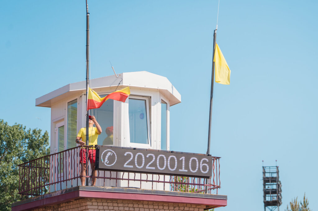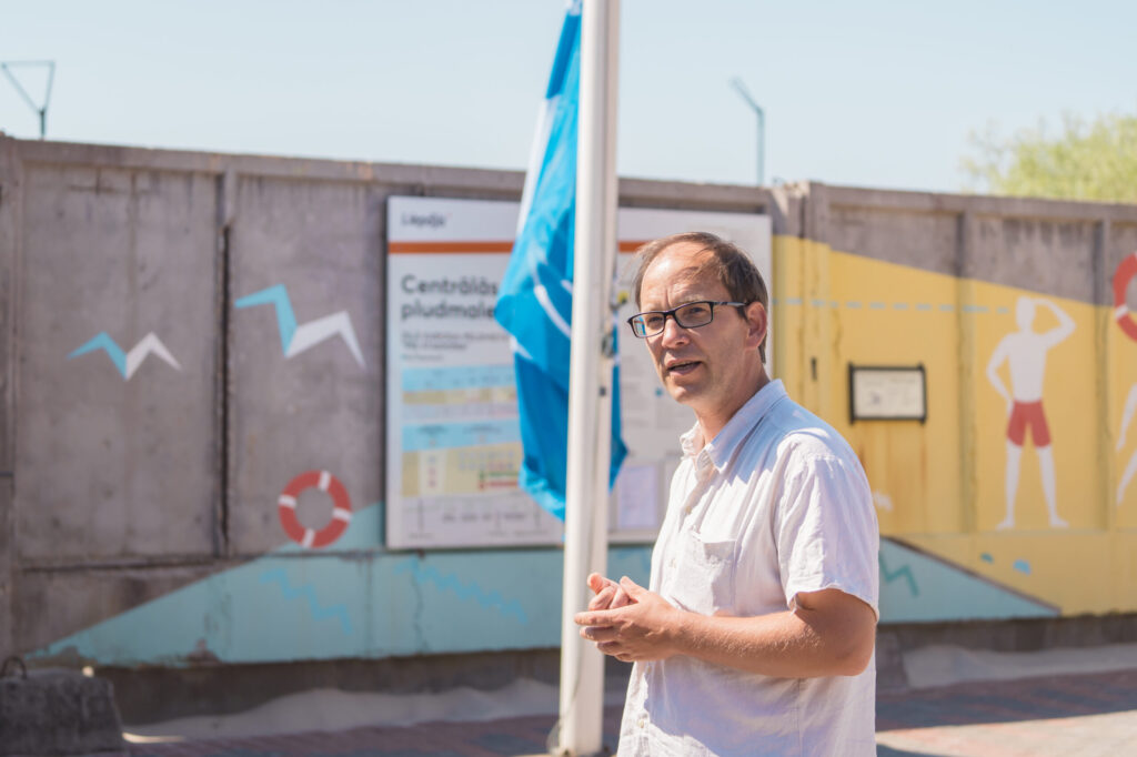 FOTO: Liepājas peldvietās paceļ Zilo karogu