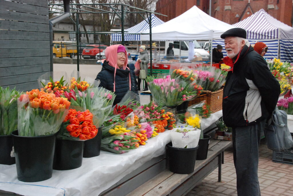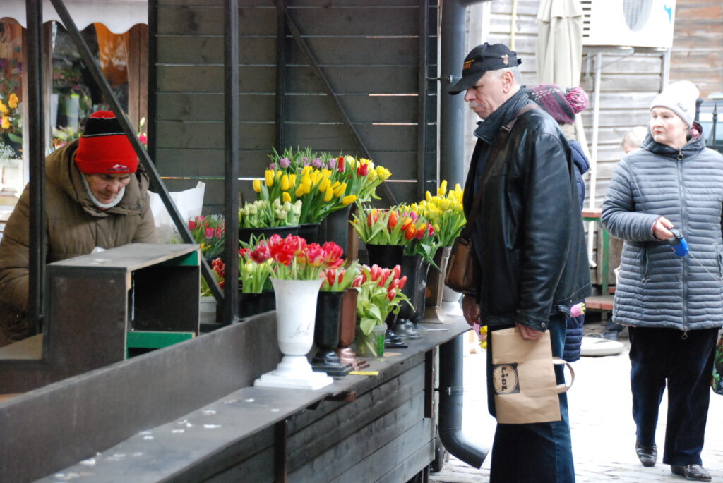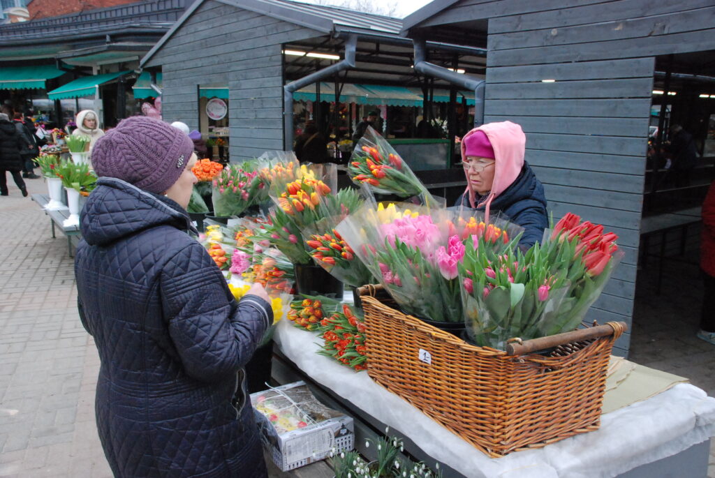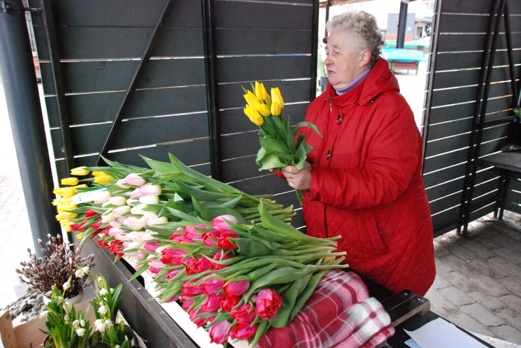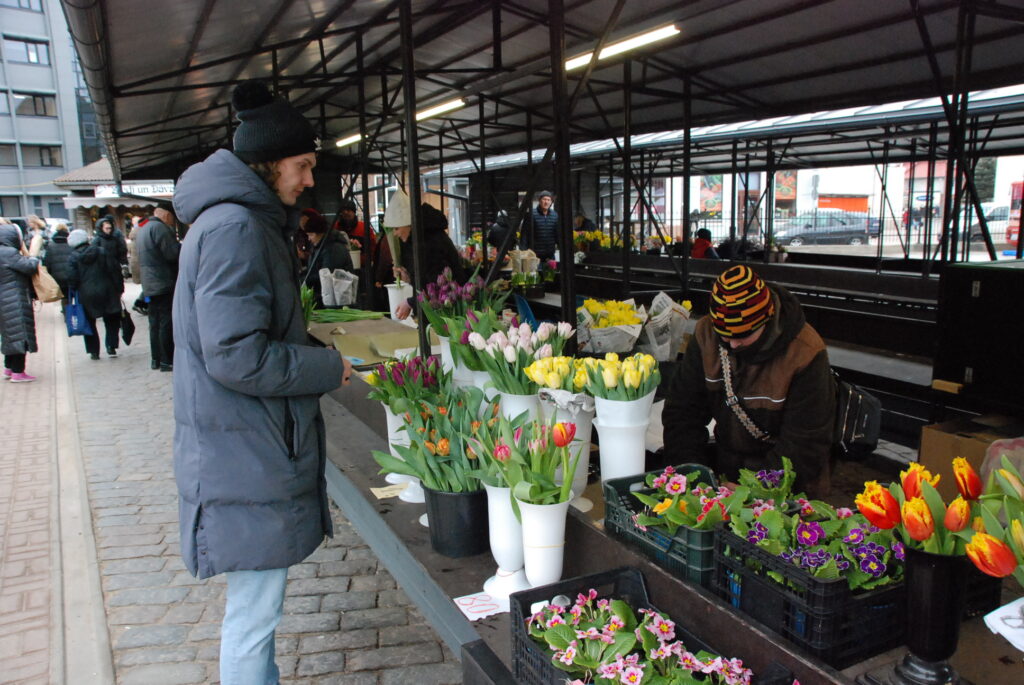 FOTO: Liepājas Pētertirgū vīrieši steidz pirkt skaistākos ziedus dāmām