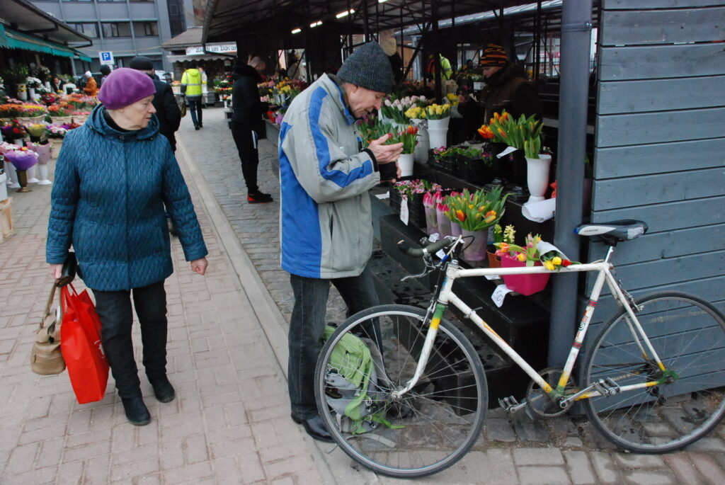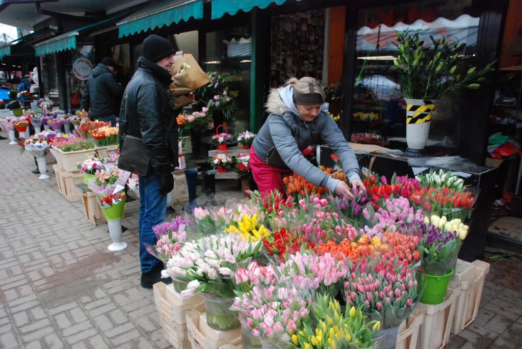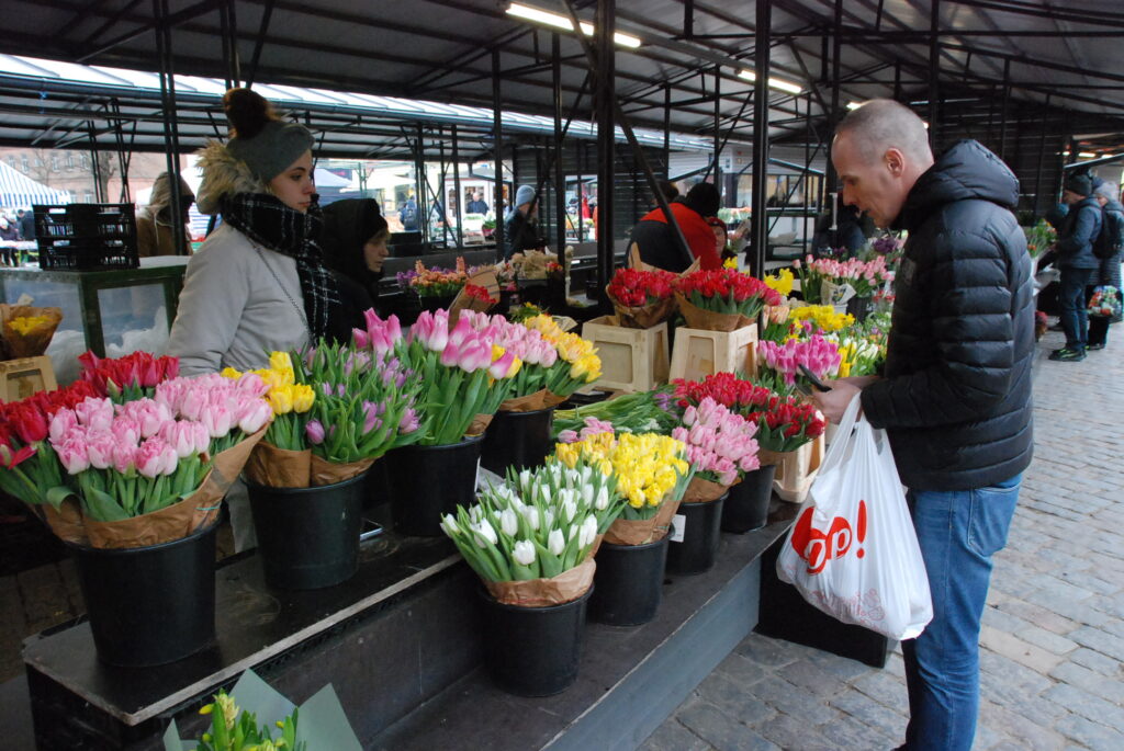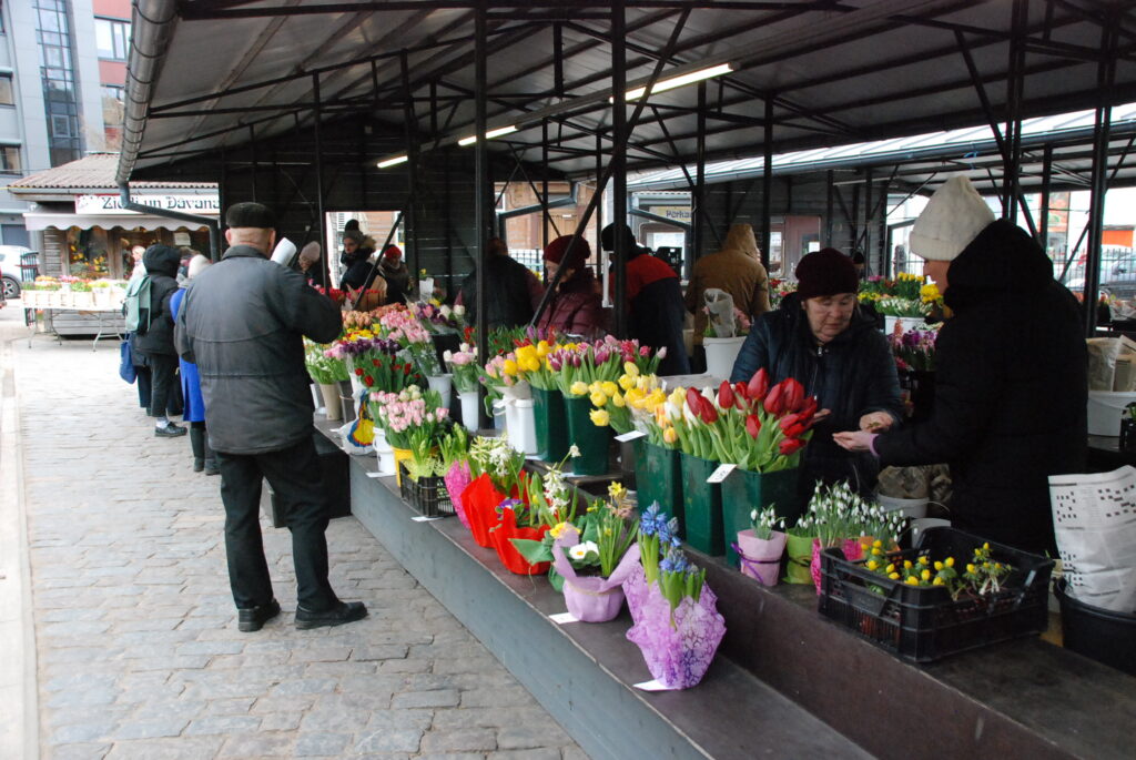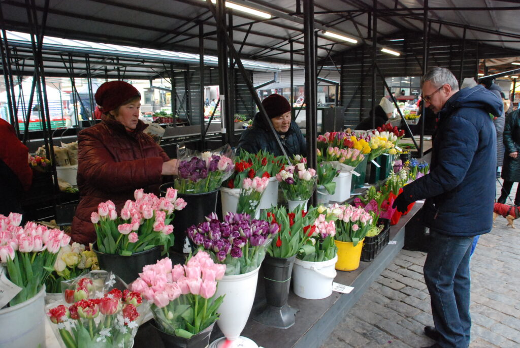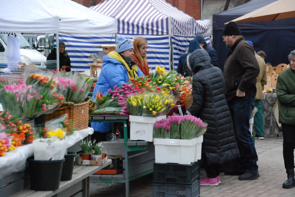 FOTO: Liepājas Pētertirgū vīrieši steidz pirkt skaistākos ziedus dāmām