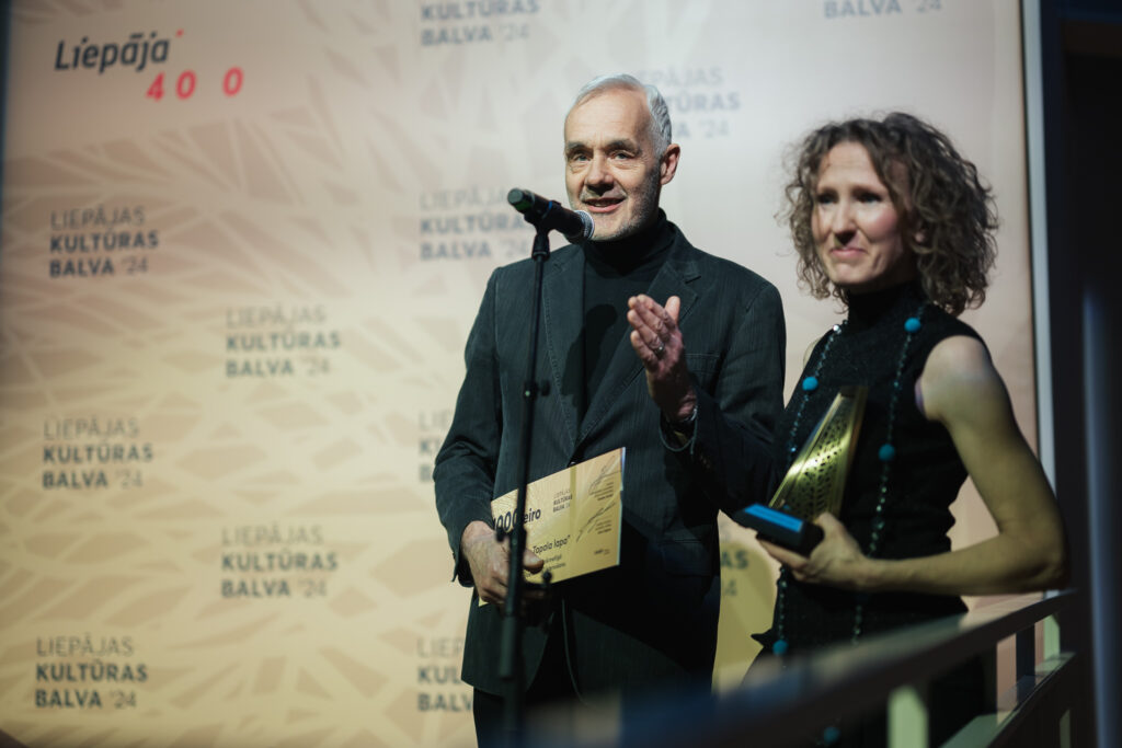 “Liepājas Kultūras balva 2024” pasniegta kultūras attīstības biedrībai “Tapala lapa” par veiksmīgu mūzikas, mākslas un laikmetīgā teātra festivāla “ziedonis Ūdenstornī” īstenošanu, kā arī piešķirta naudas balva 1000 eiro.