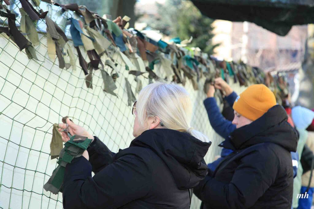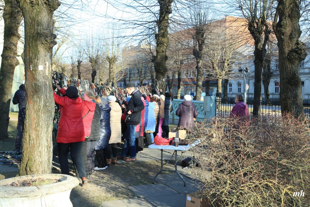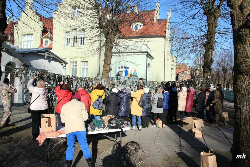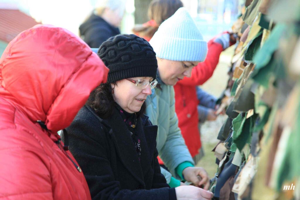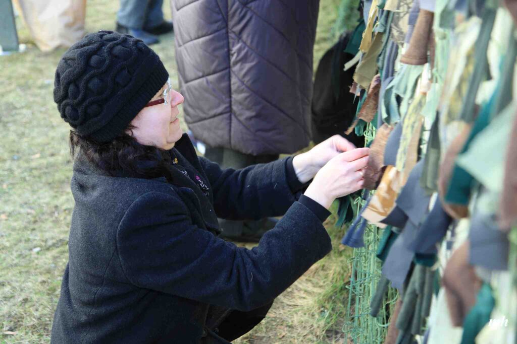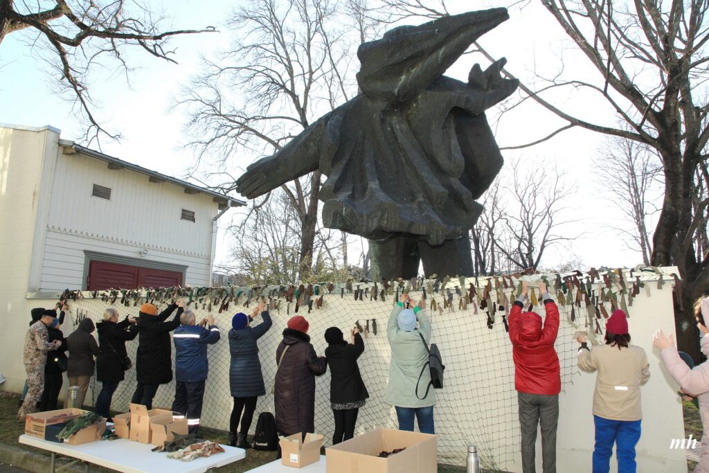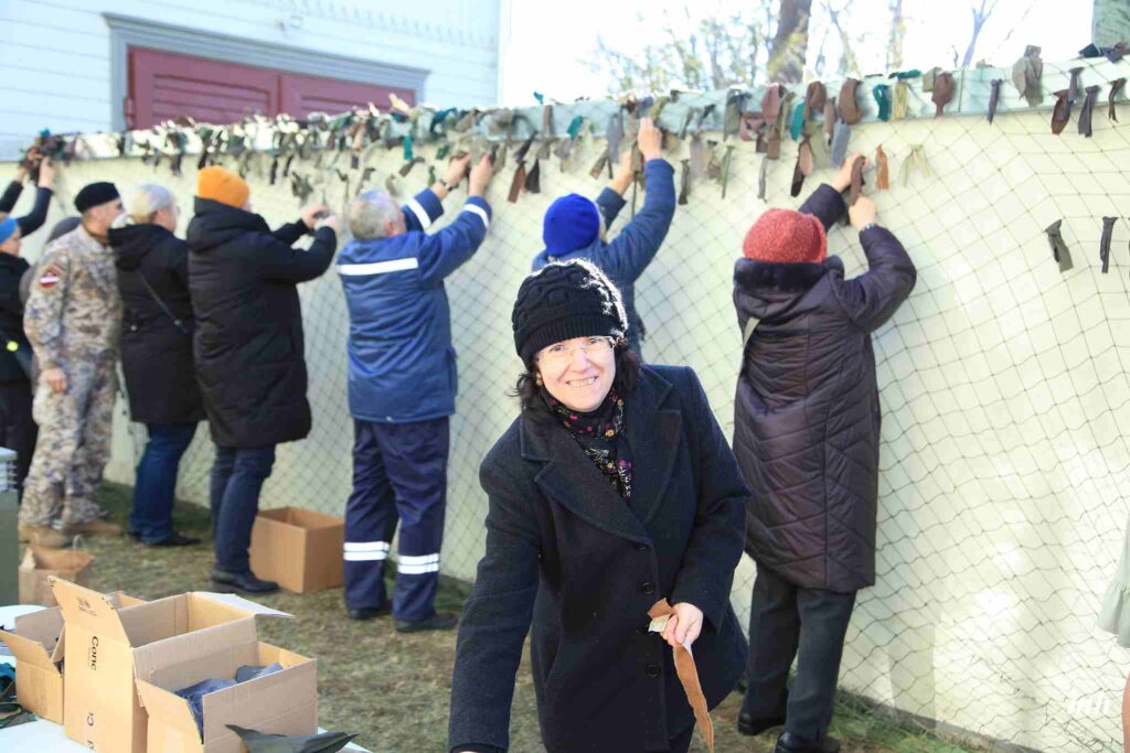 Fotoieskats Liepājas muzeja rīkotajā akcijā “Tu vari palīdzēt Ukrainai! Maskēšanās tīklu siešana. Piedalies, nepaliec malā!”, kas ceturtdien aizsākās muzeja dārzā.