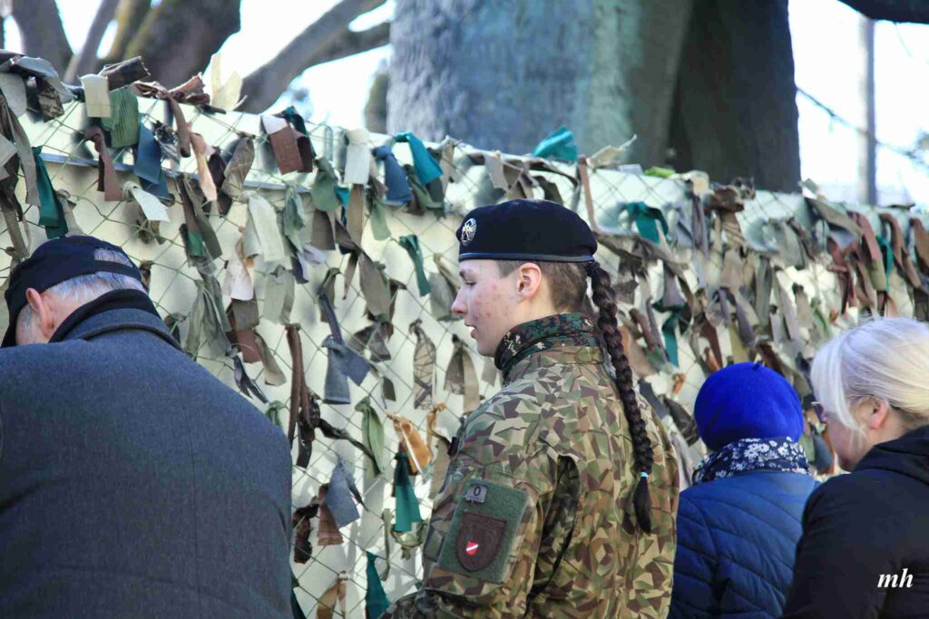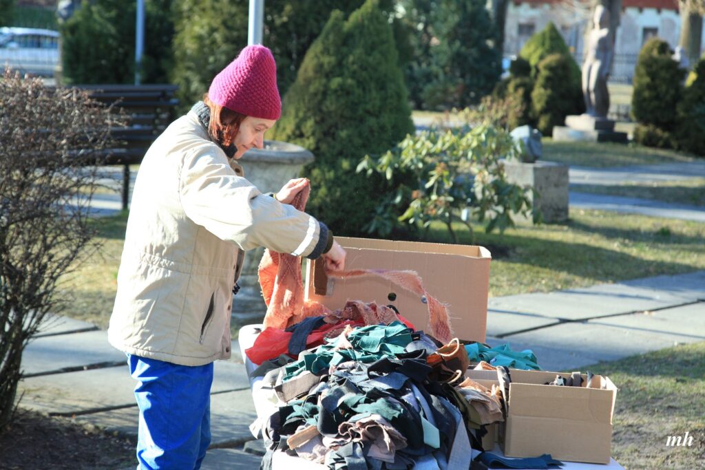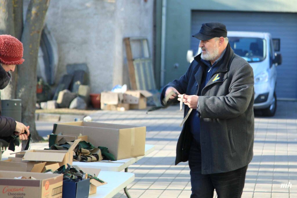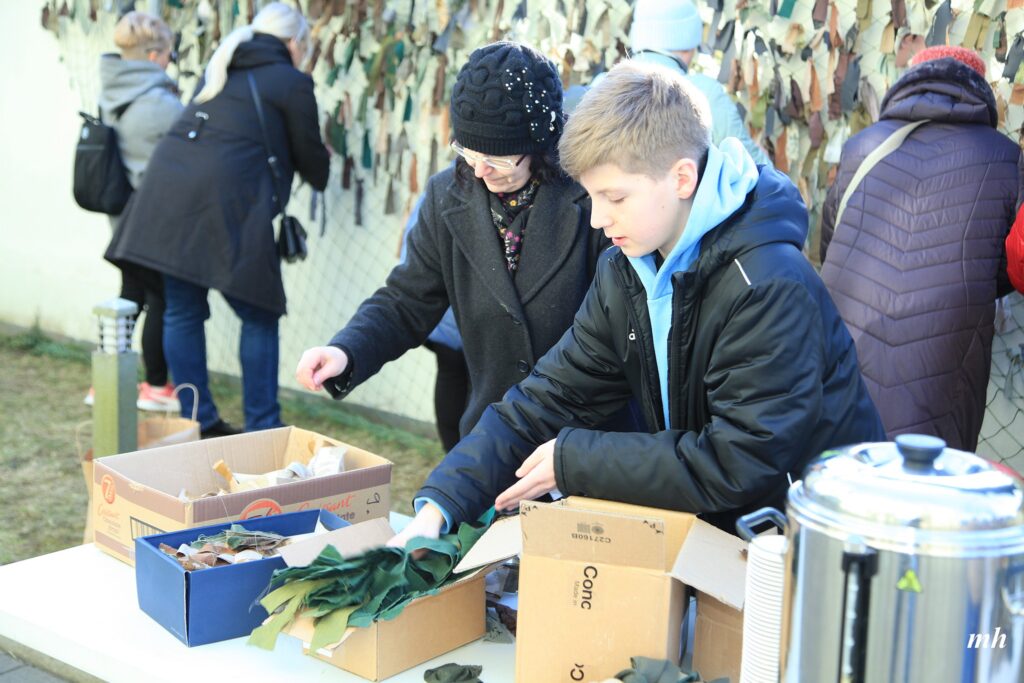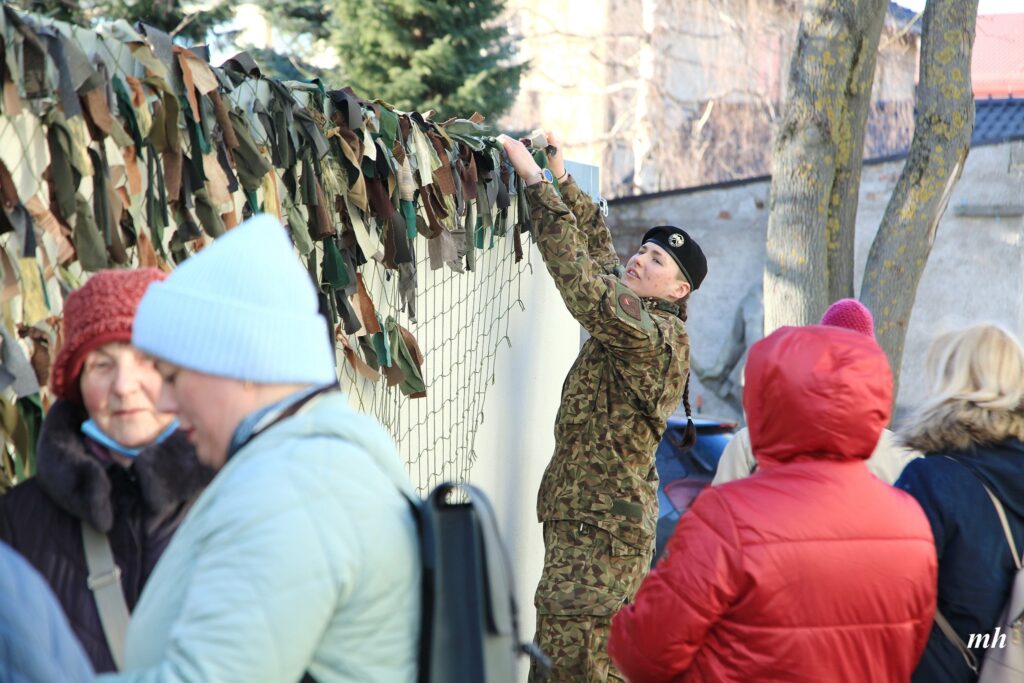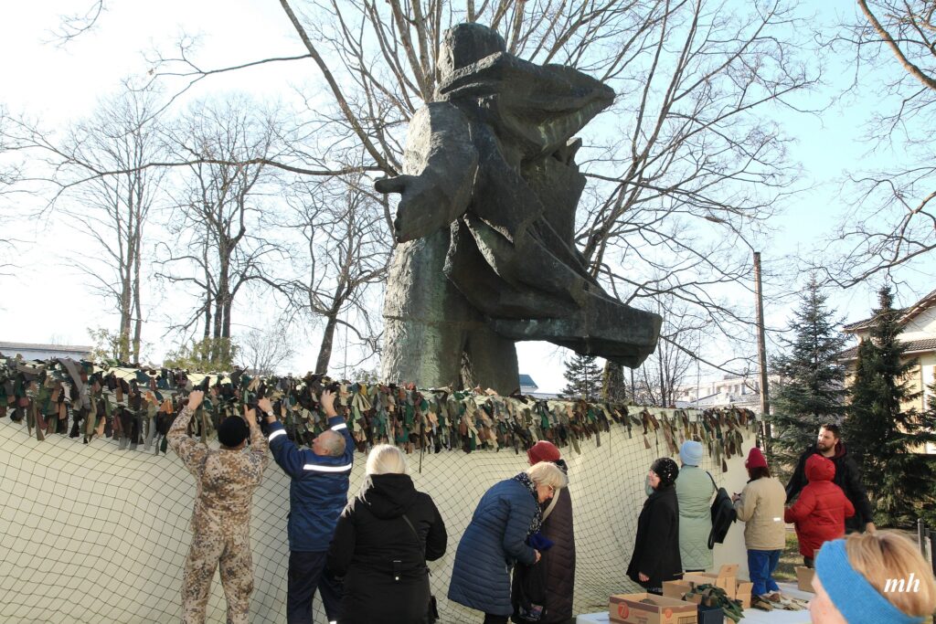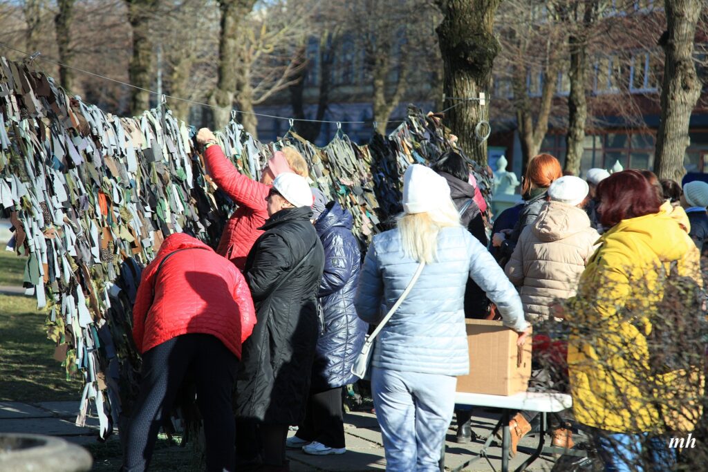 Fotoieskats Liepājas muzeja rīkotajā akcijā “Tu vari palīdzēt Ukrainai! Maskēšanās tīklu siešana. Piedalies, nepaliec malā!”, kas ceturtdien aizsākās muzeja dārzā.