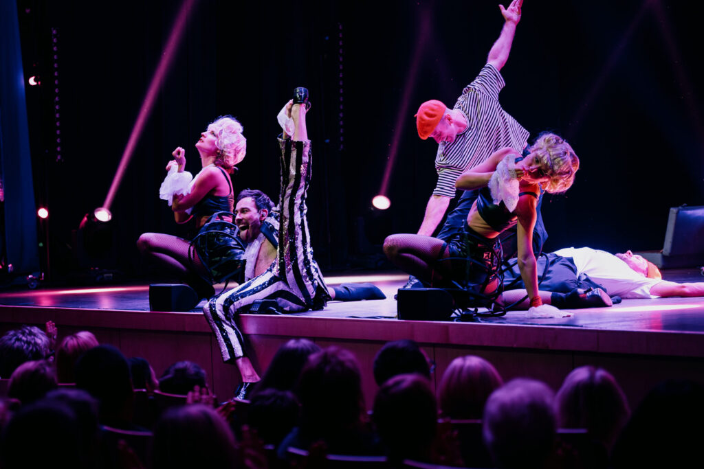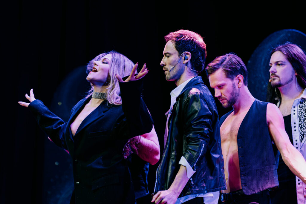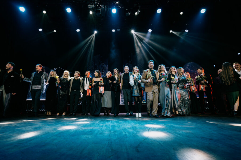 Uz skatuves – jaudīga aktieru, dziedātāju un dejotāju komanda: Maksims Busels, Anmary, Atis Zviedris, Dainis Skutelis, Sanita Roze, Artūrs Biķernieks, Toms Kalderauskis, Emīls Gilučs-Lācis, Austra Elza Kozuliņa, Zane Helēna Lazdiņa, Sarma Liede, Karīna Biķerniece, Roberts Peičs, Rolands Šteinbergs, Zane Stūre, Kārlis Kemlers, Asnate Rikse. Par muzikālo gaisotni rūpējas instrumentālā grupa Matīsa Žilinska vadībā.