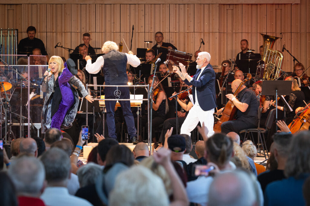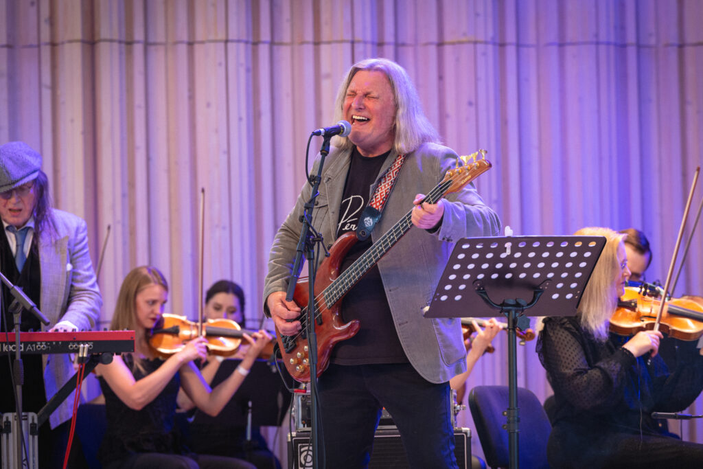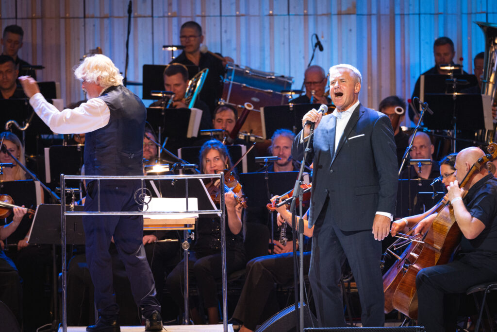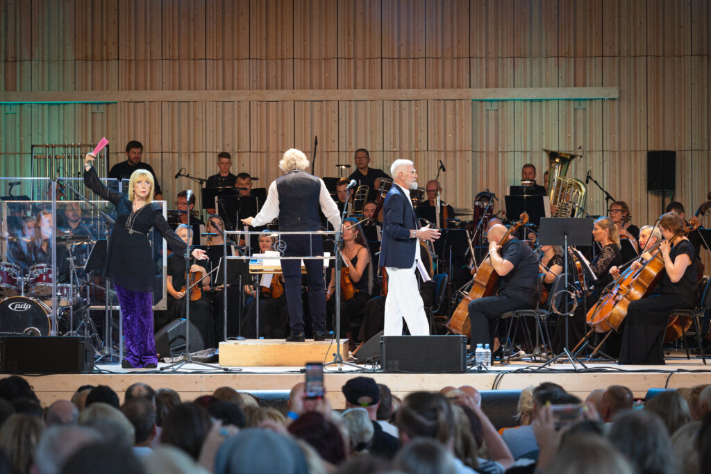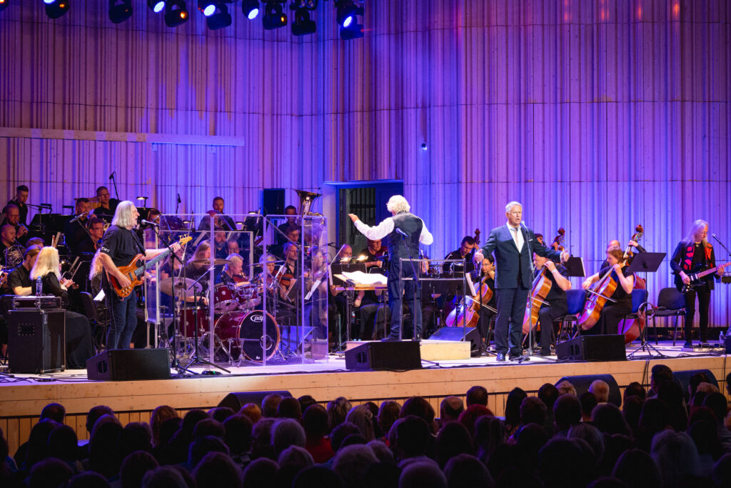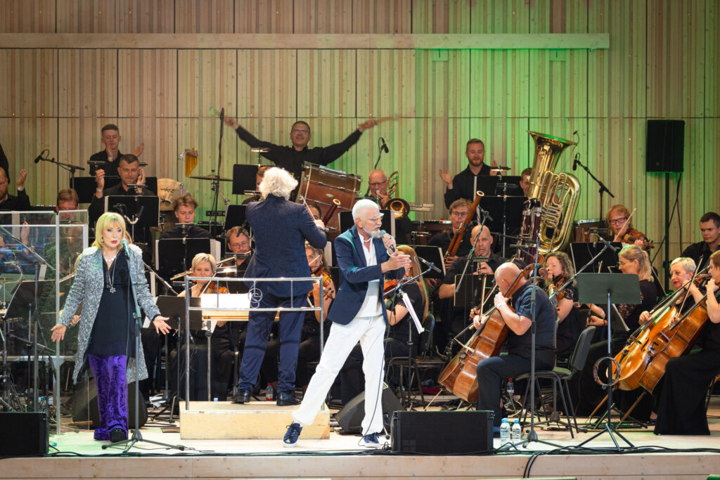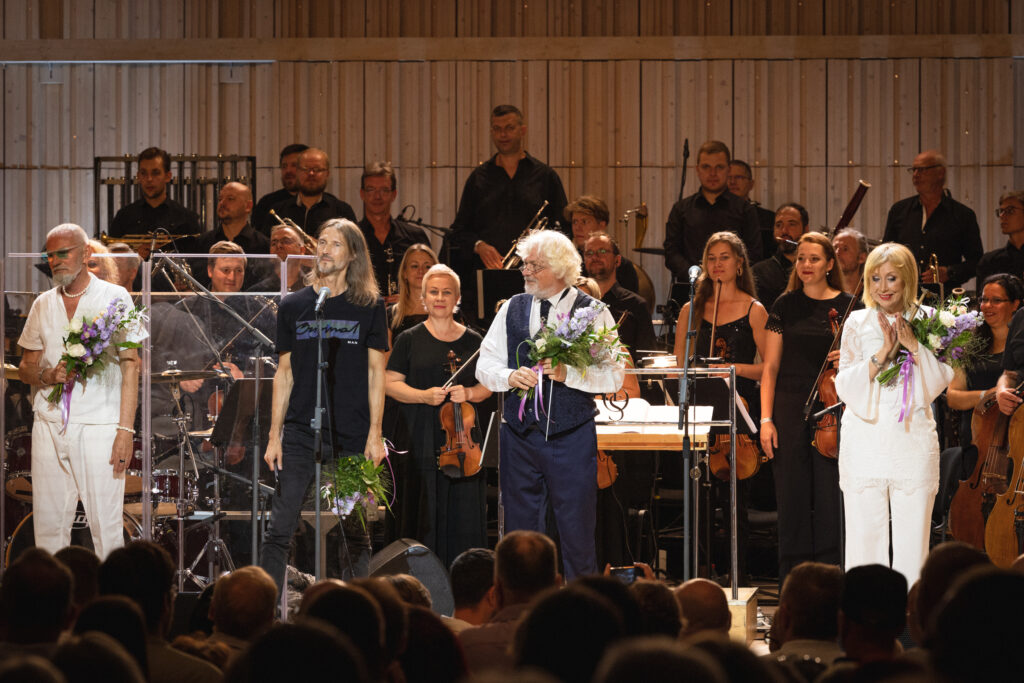 FOTO: "Pūt, vējiņos!" leģendārās grupas "Pērkons" koncertā kopā ar simfonisko orķestri publika lec kājās jau pie trešās dziesmas